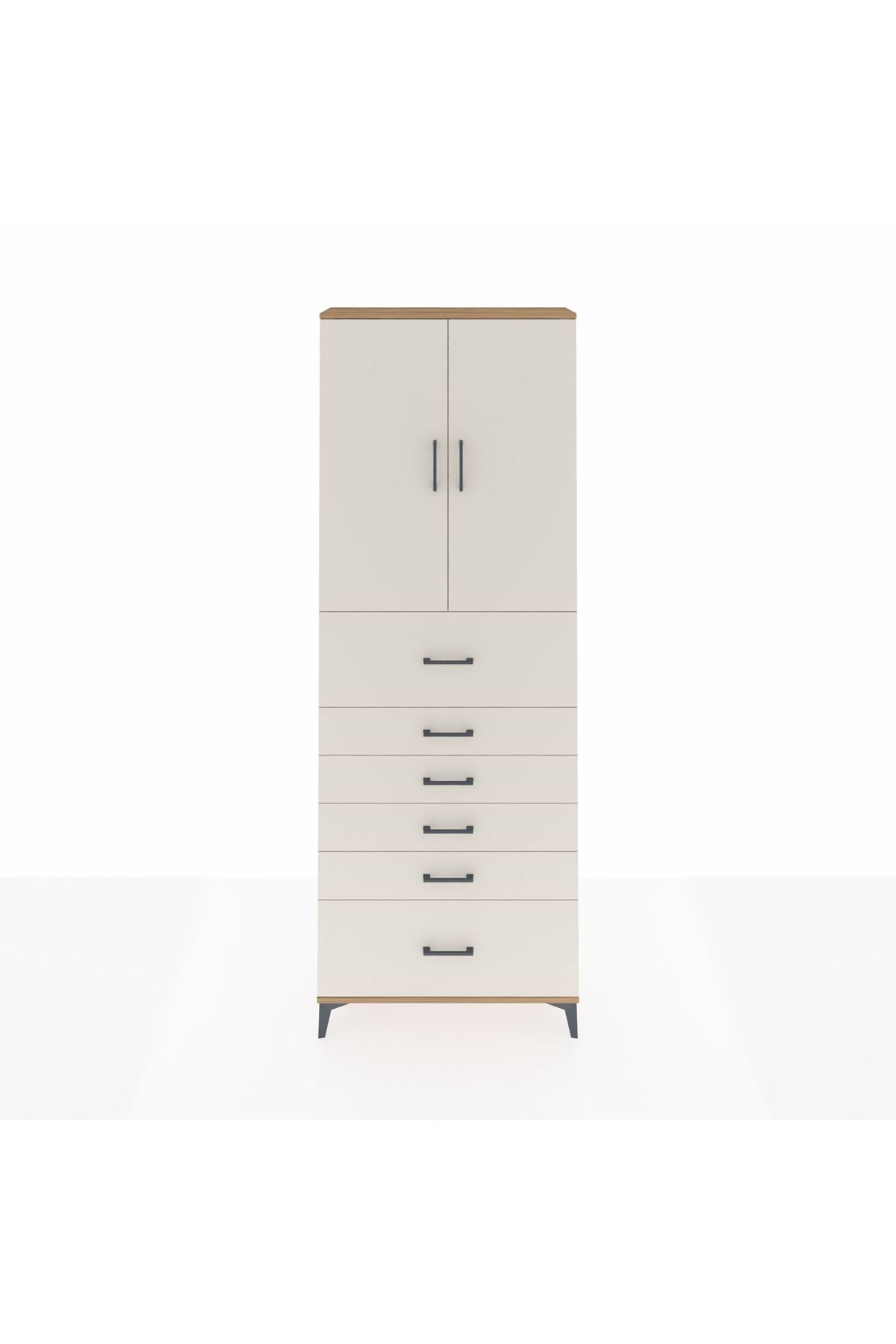 Arges Dolap 3 Raflı 6 Çekmeceli 2 Kapaklı 88x30x243 Çam-Aytaşı