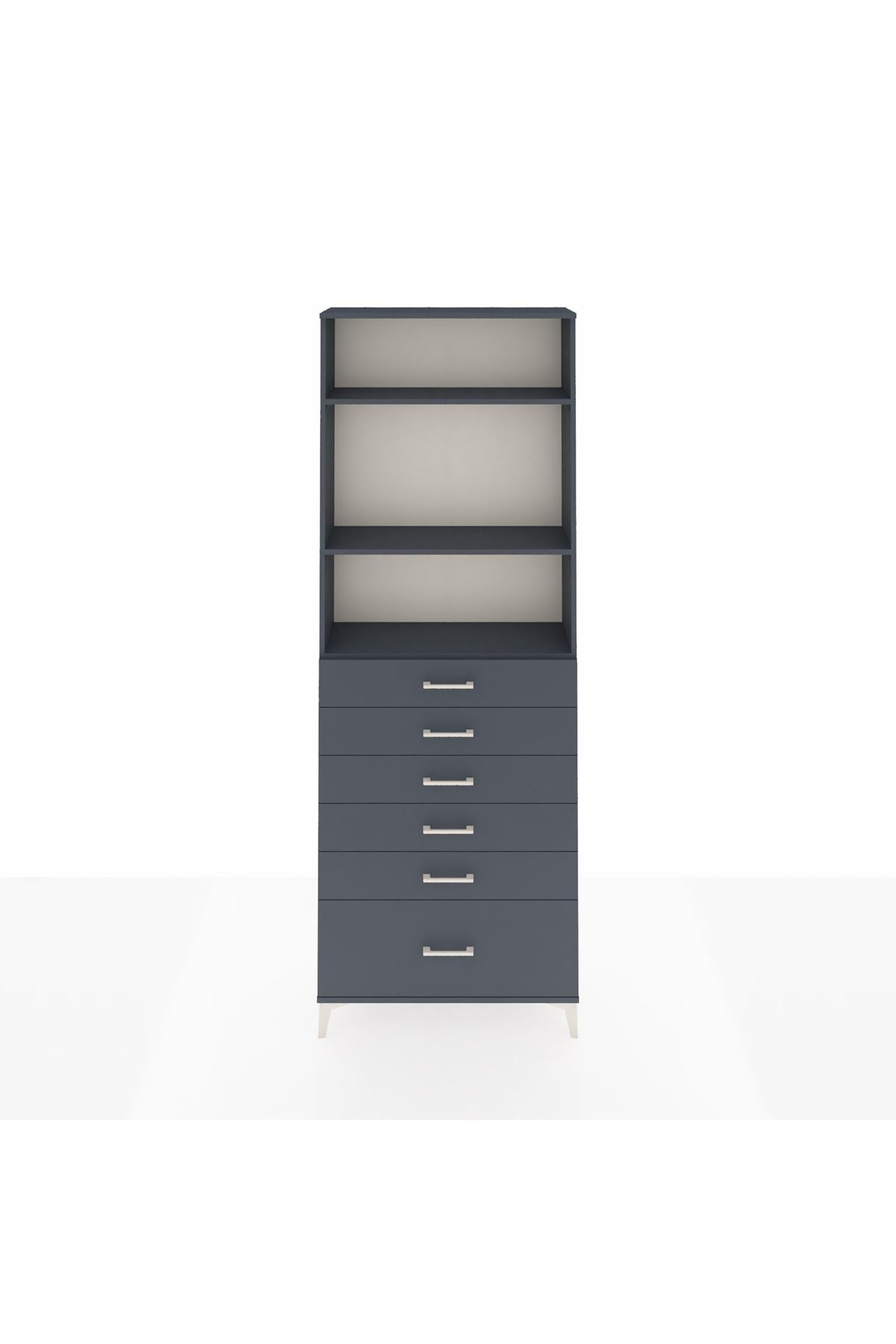 Arges Dolap 3 Raflı 6 Çekmeceli 88x30x243 Antrasit-Antrasit