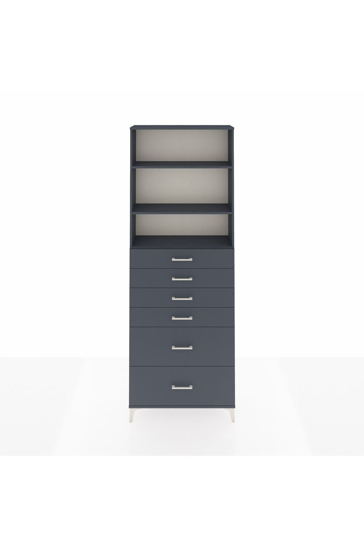 Arges Dolap 3 Raflı 6 Çekmeceli 88x30x243 Antrasit-Antrasit