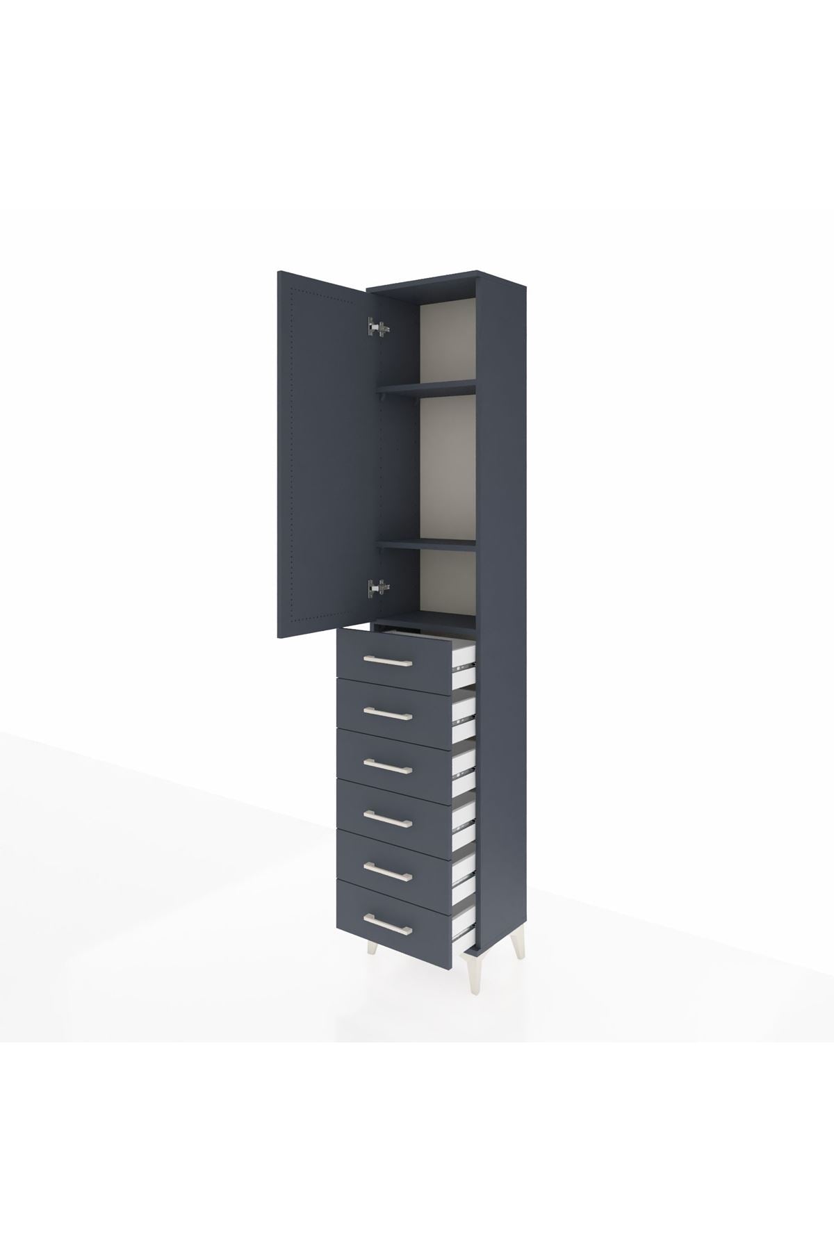 Arges Dolap 3 Raflı 6 Çekmeceli Tek Kapaklı 44x30x221 Antrasit-Antrasit