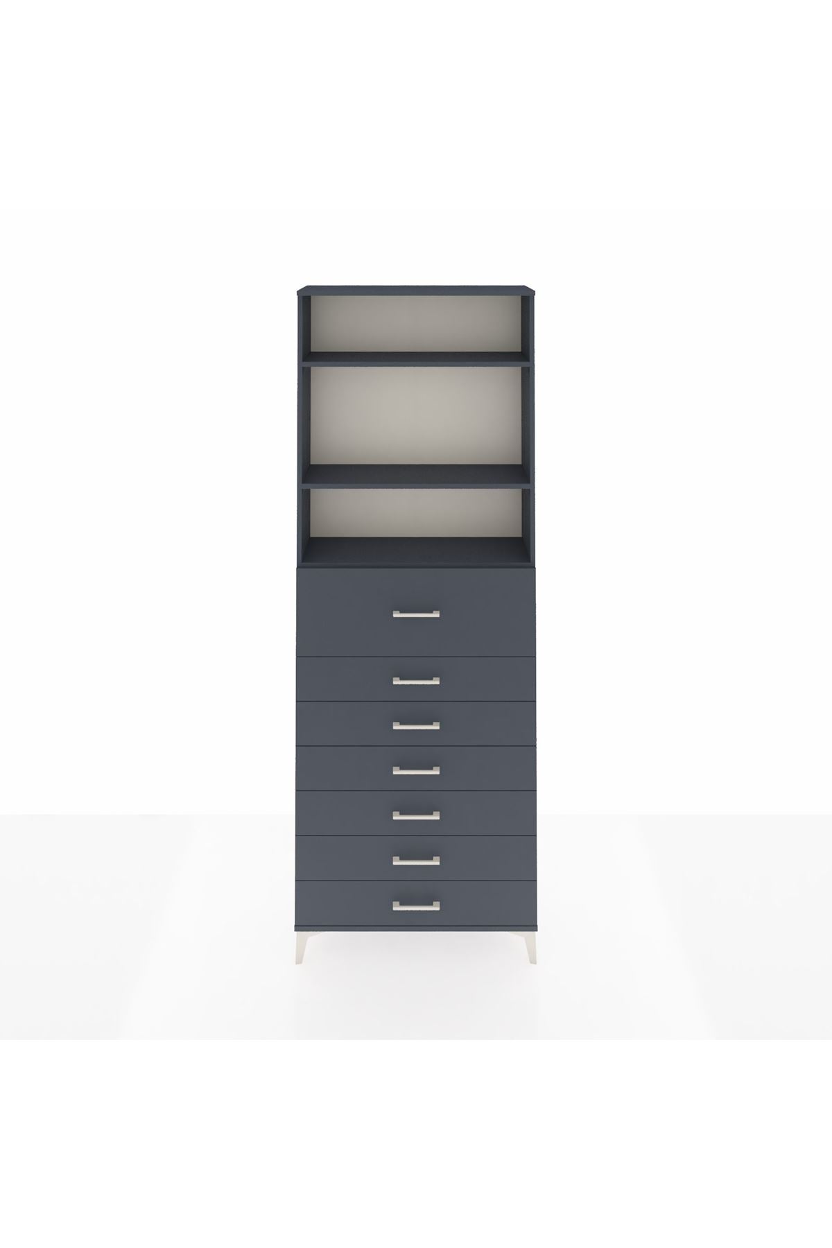 Arges Dolap 3 Raflı 7 Çekmeceli 88x30x243 Antrasit-Antrasit