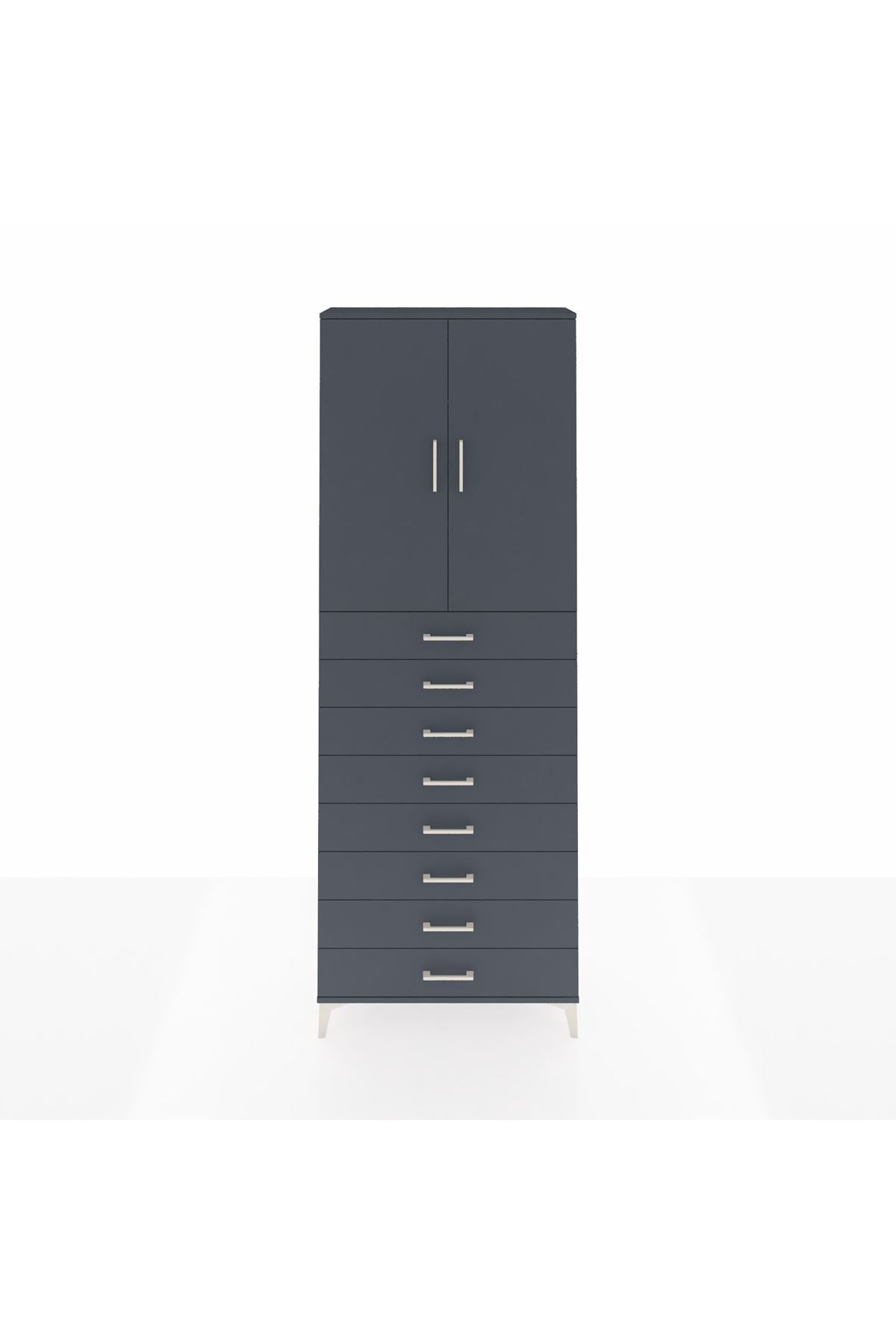 Arges Dolap 3 Raflı 8 Çekmeceli 2 Kapaklı 88x30x243 Antrasit-Antrasit