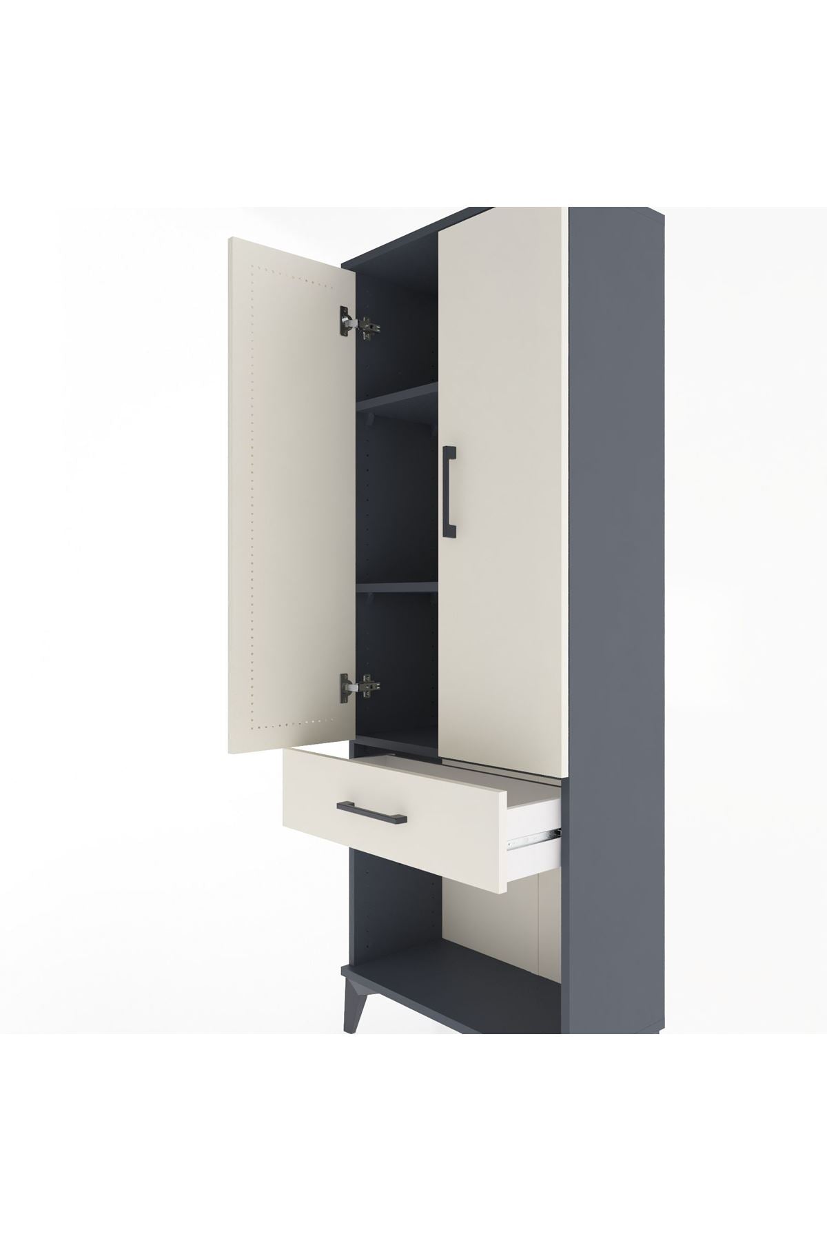 Arges Dolap 3 Raflı Tek Çekmeceli 2 Kapaklı 60x30x163 Antrasit-Aytaşı