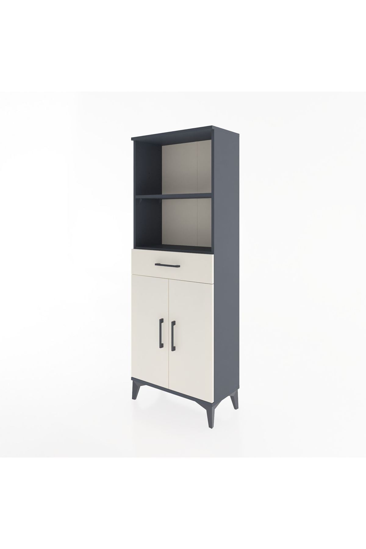 Arges Dolap 3 Raflı Tek Çekmeceli 2 Kapaklı 60x30x163 Antrasit-Aytaşı