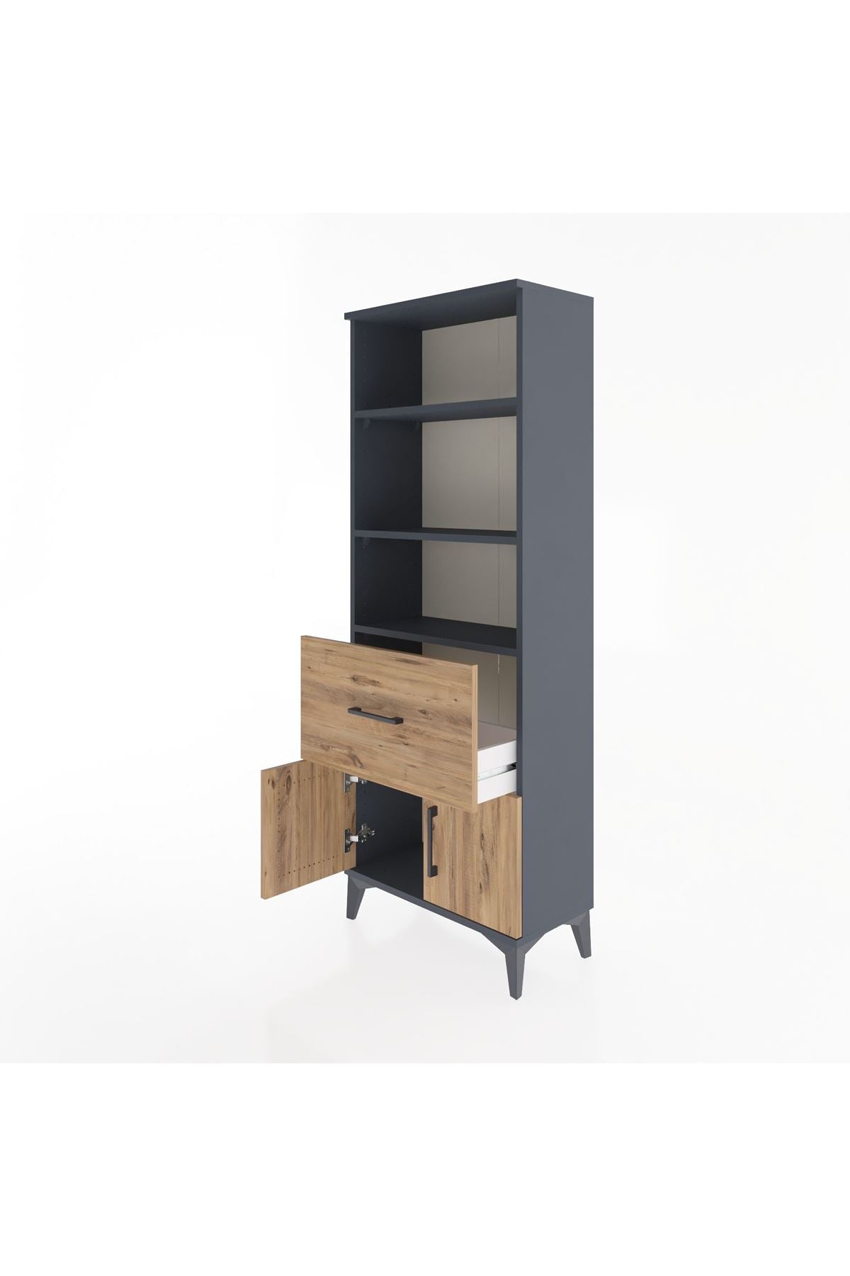 Arges Dolap 3 Raflı Tek Çekmeceli 2 Kapaklı 60x30x163 Antrasit-Çam