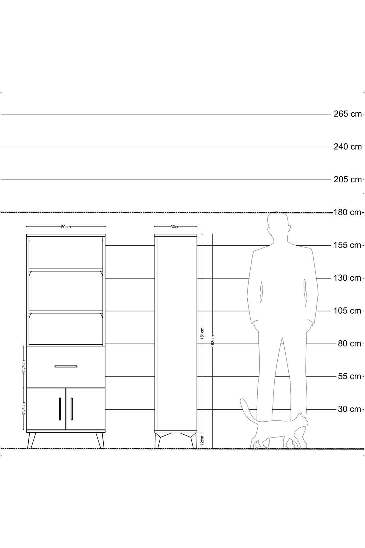 Arges Dolap 3 Raflı Tek Çekmeceli 2 Kapaklı 60x30x163 Çam-Çam