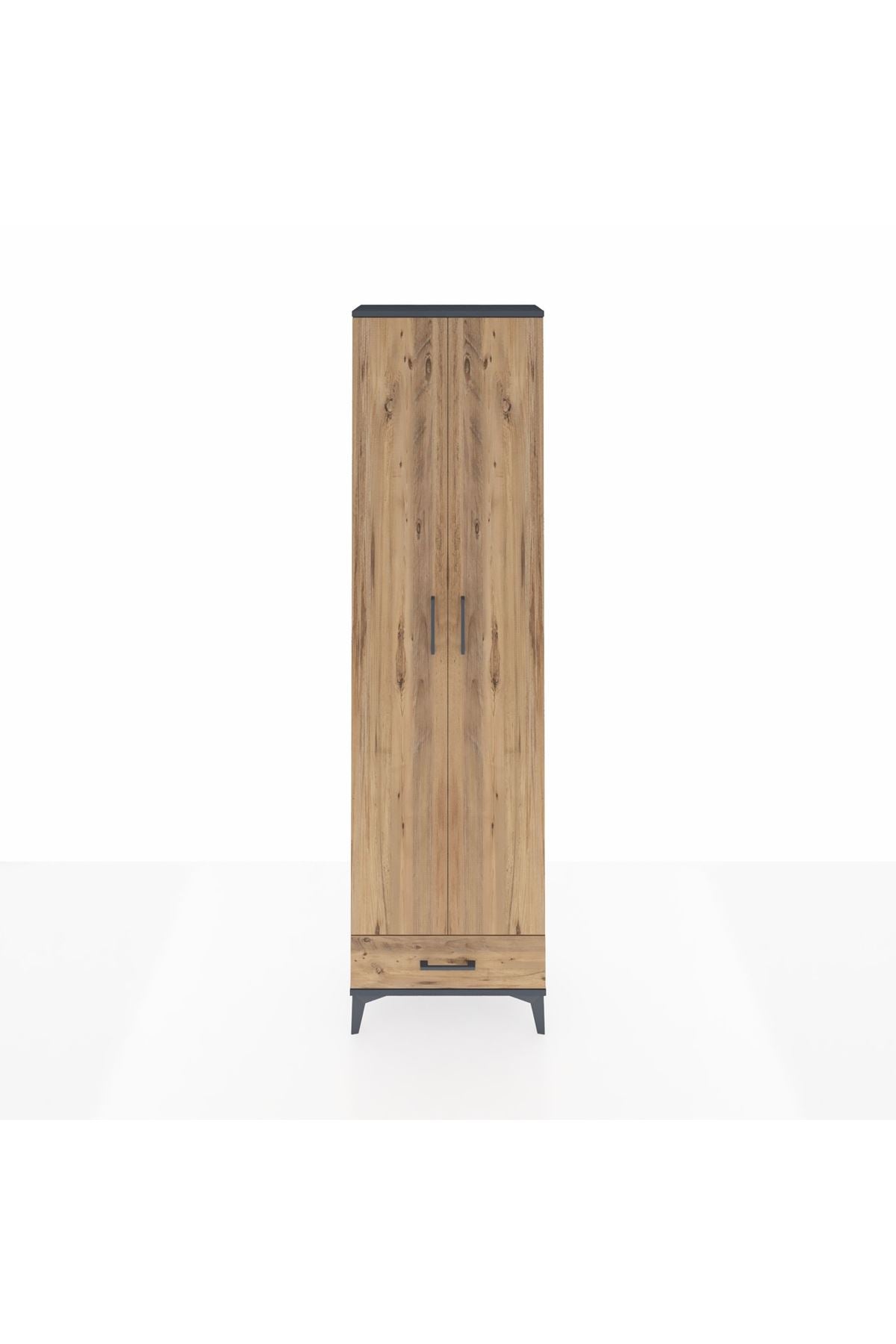 Arges Dolap 3 Raflı Tek Çekmeceli Tek Askılı 60x30x221 Antrasit-Çam