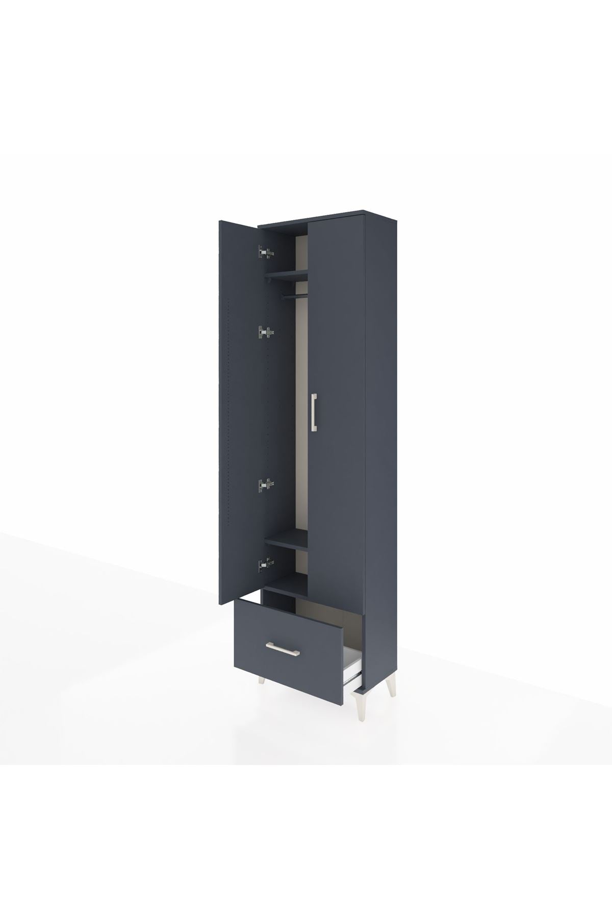 Arges Dolap 3 Raflı Tek Çekmeceli Tek Askılı 60x30x221 Antrasit-Antrasit