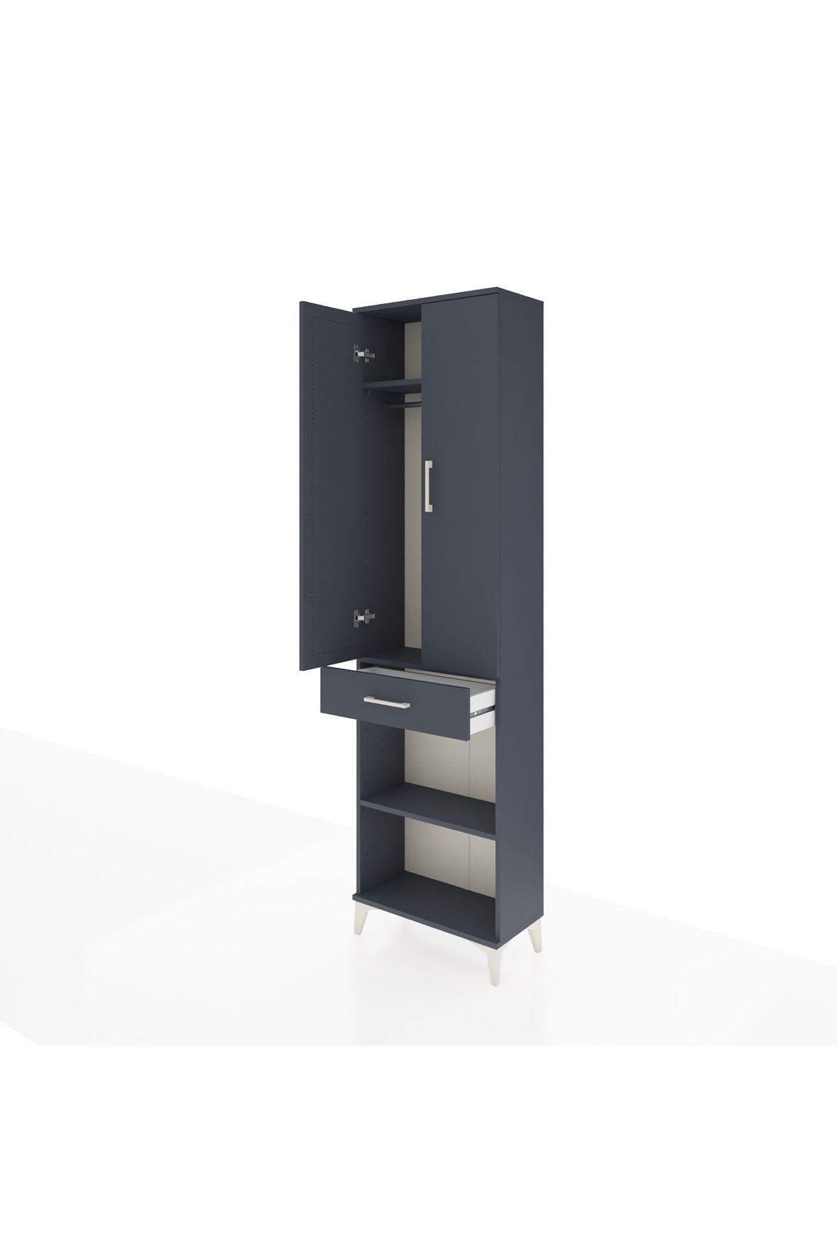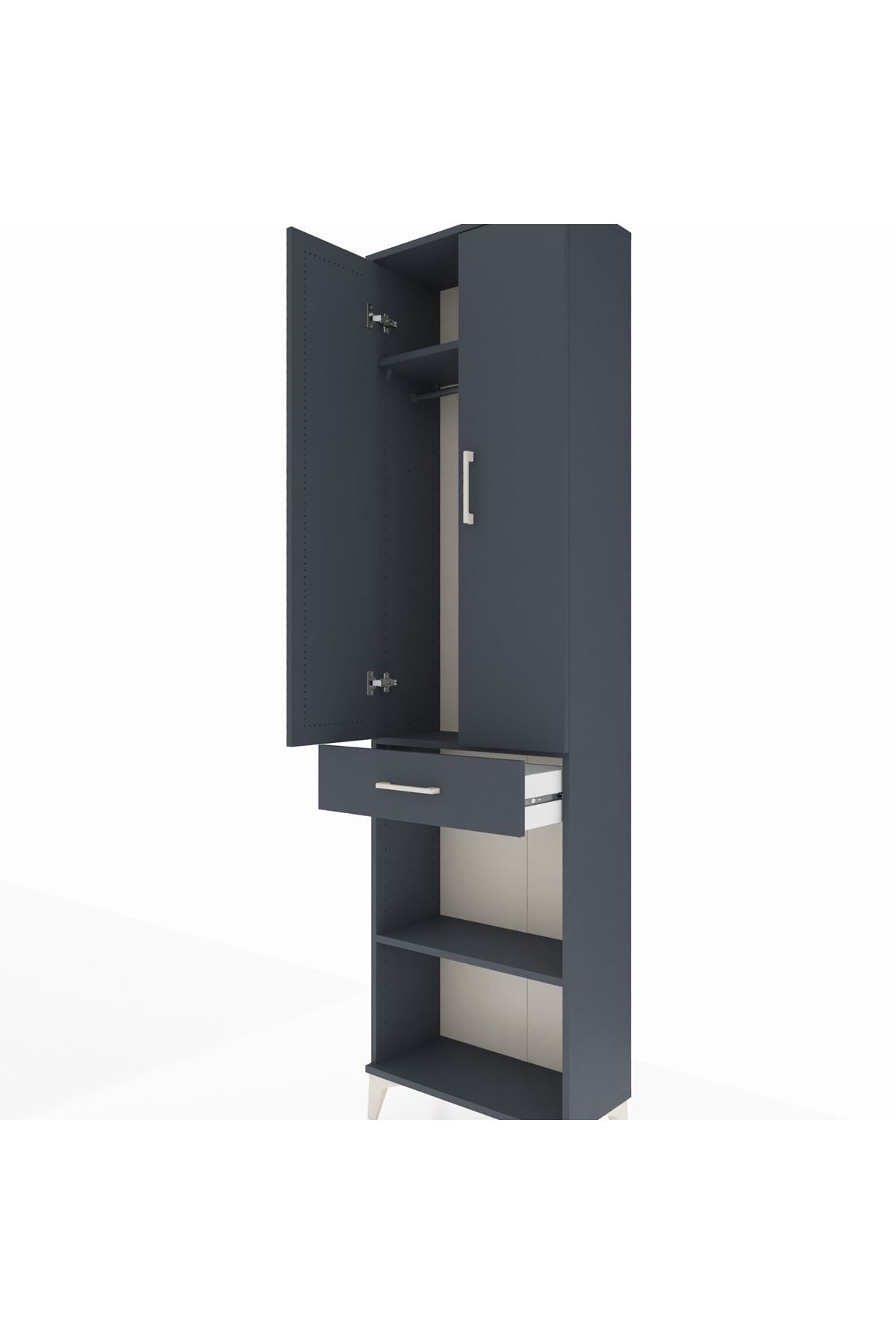 Arges Dolap 3 Raflı Tek Çekmeceli Tek Askılı 60x30x221 Antrasit-Antrasit