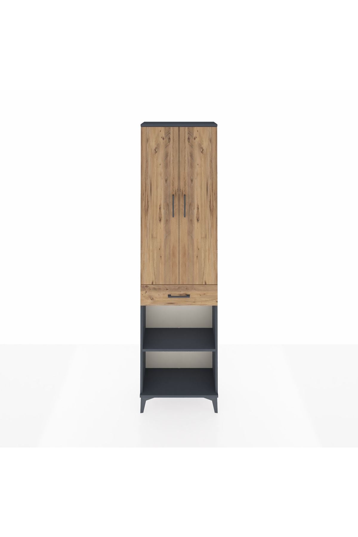 Arges Dolap 3 Raflı Tek Çekmeceli Tek Askılı 60x30x221 Antrasit-Çam