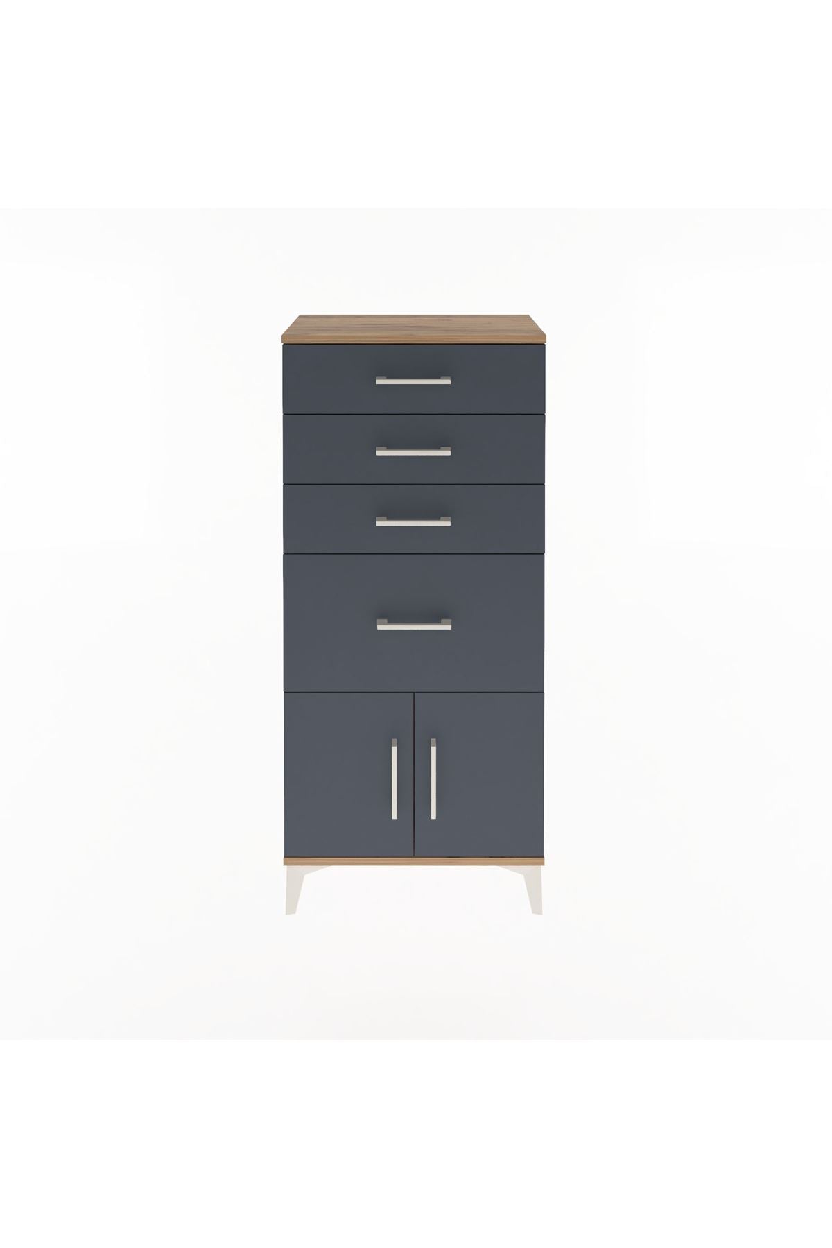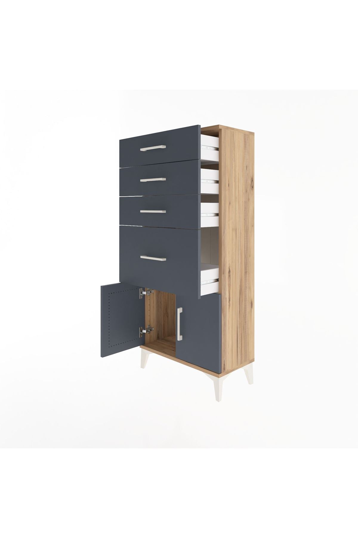 Arges Dolap 4 Çekmeceli 2 Kapaklı 60x30x134 Çam-Antrasit