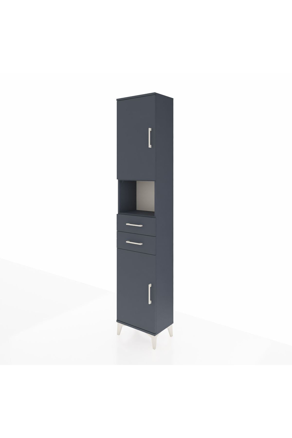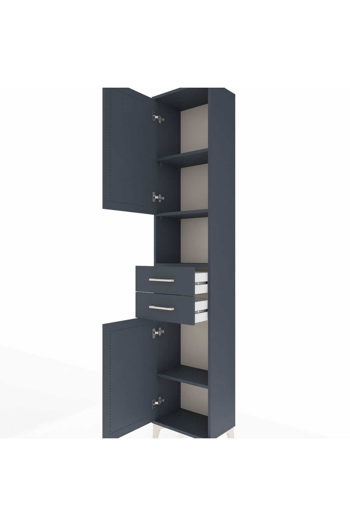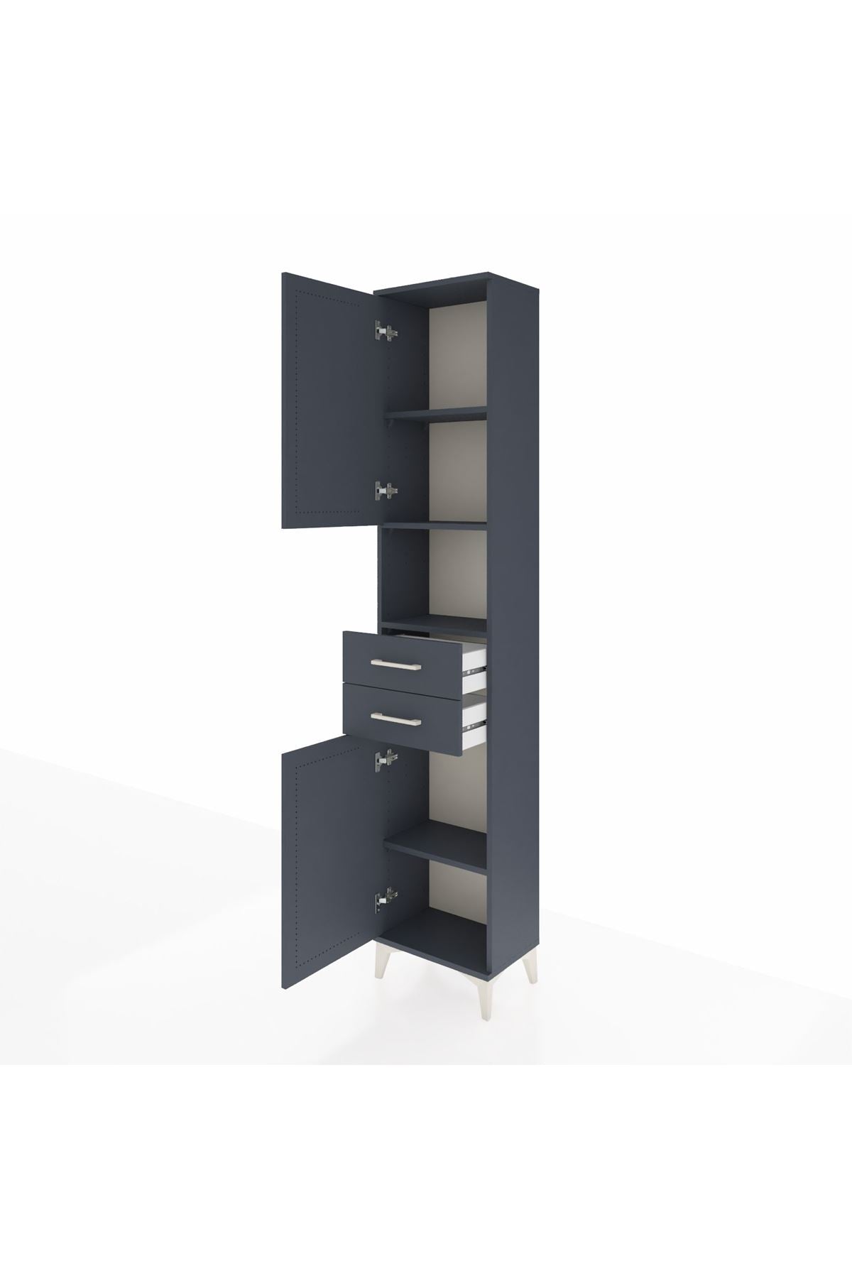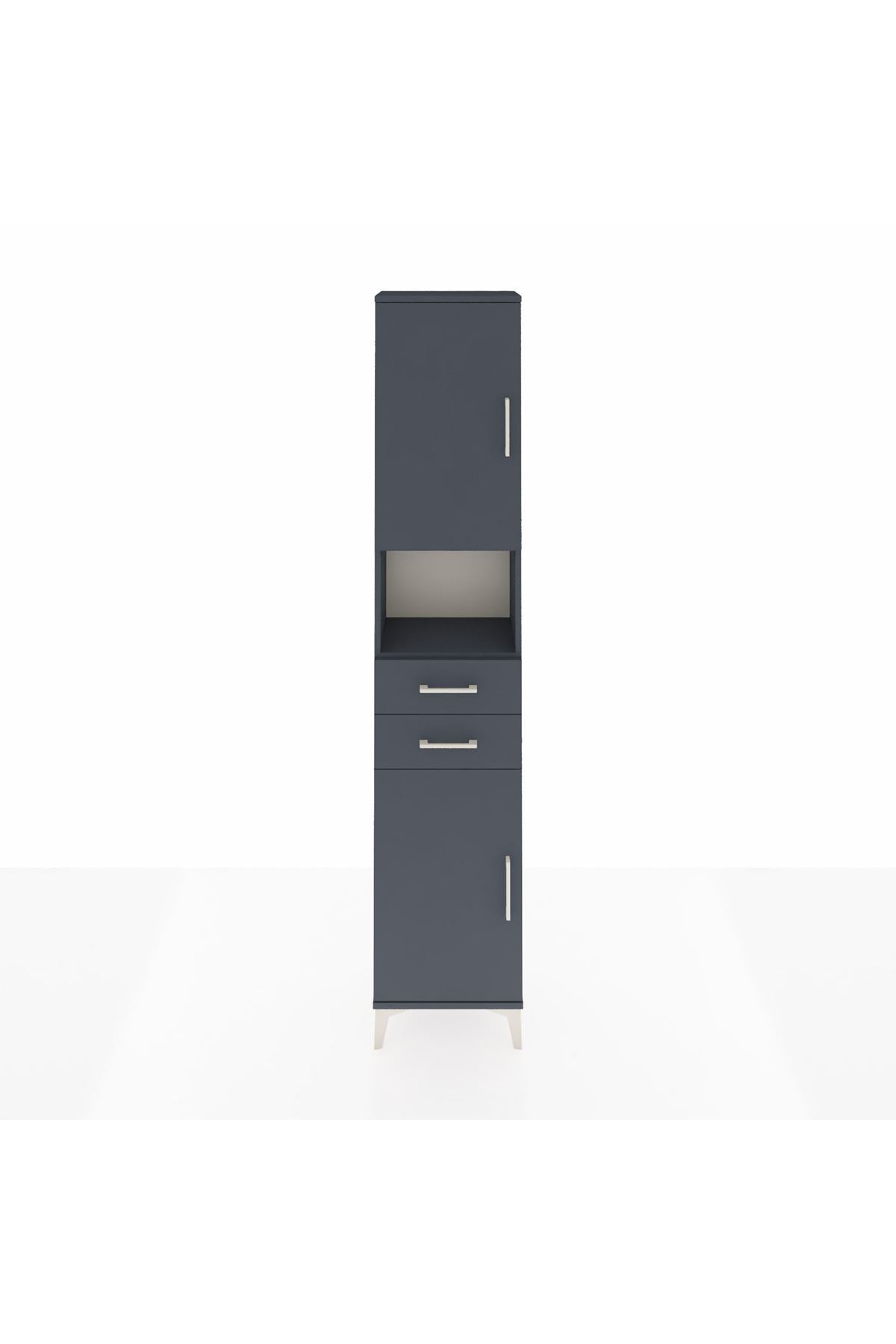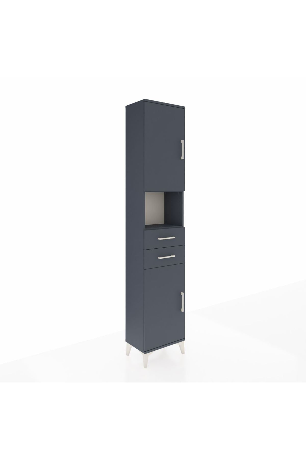 🖤 Arges Dolap 4 Raflı 2 Çekmeceli 2 Kapaklı, 44x30x221 cm ölçüleri ve antrasit-antrasit şık tonuyla modern ev ve ofislerinizde benzersiz bir düzen sunar.
