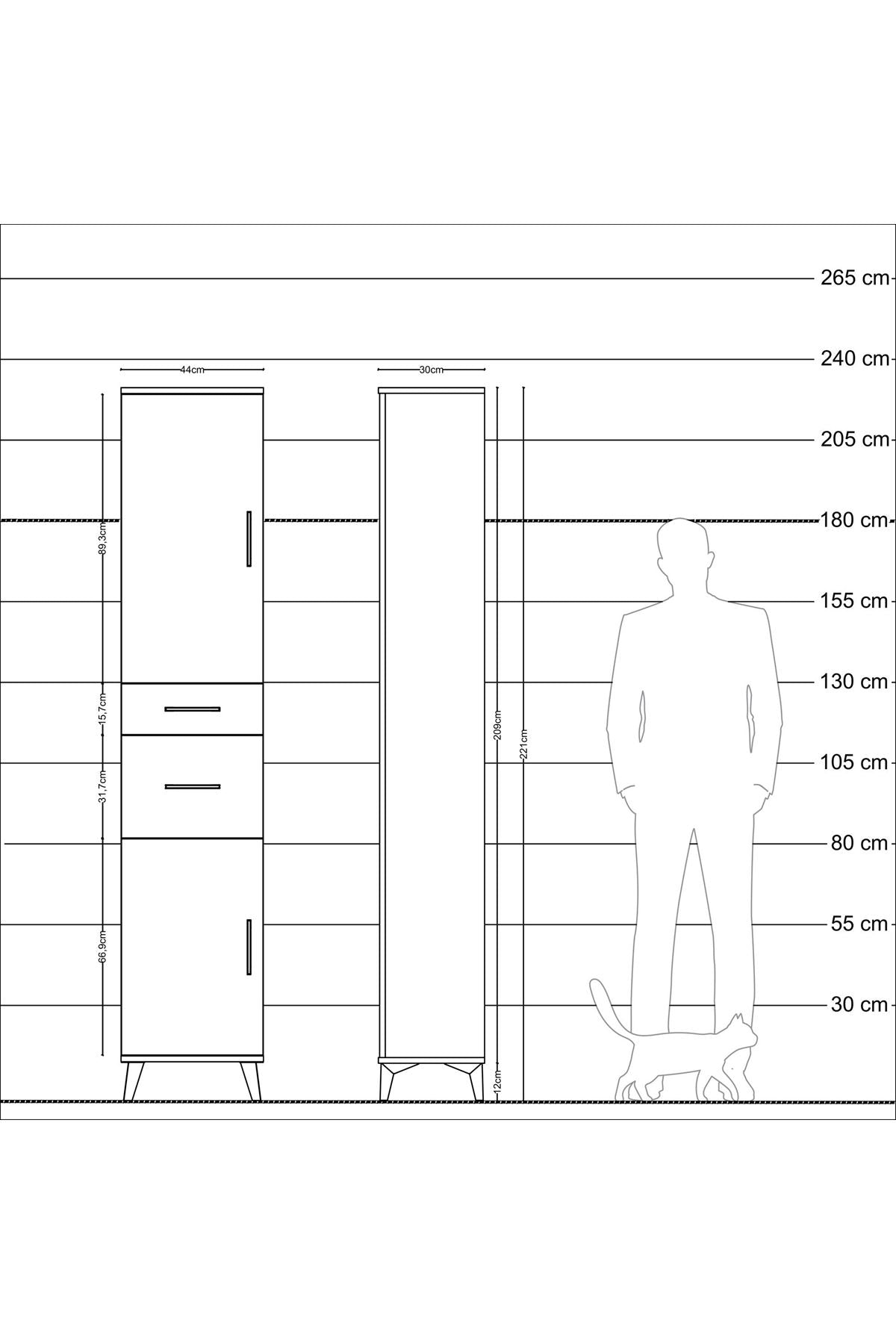 Arges Dolap 4 Raflı 2 Çekmeceli 2 Kapaklı 44x30x221 Aytaşı-Antrasit
