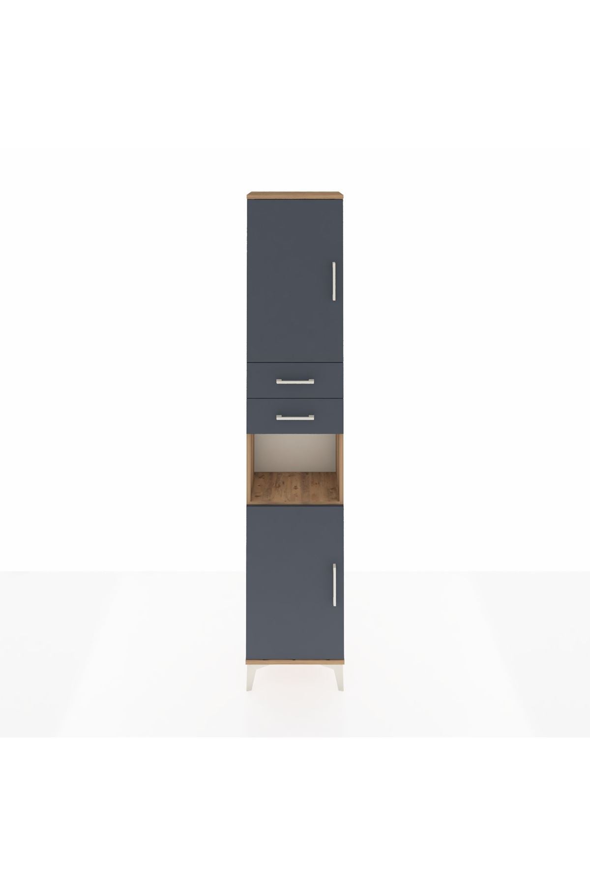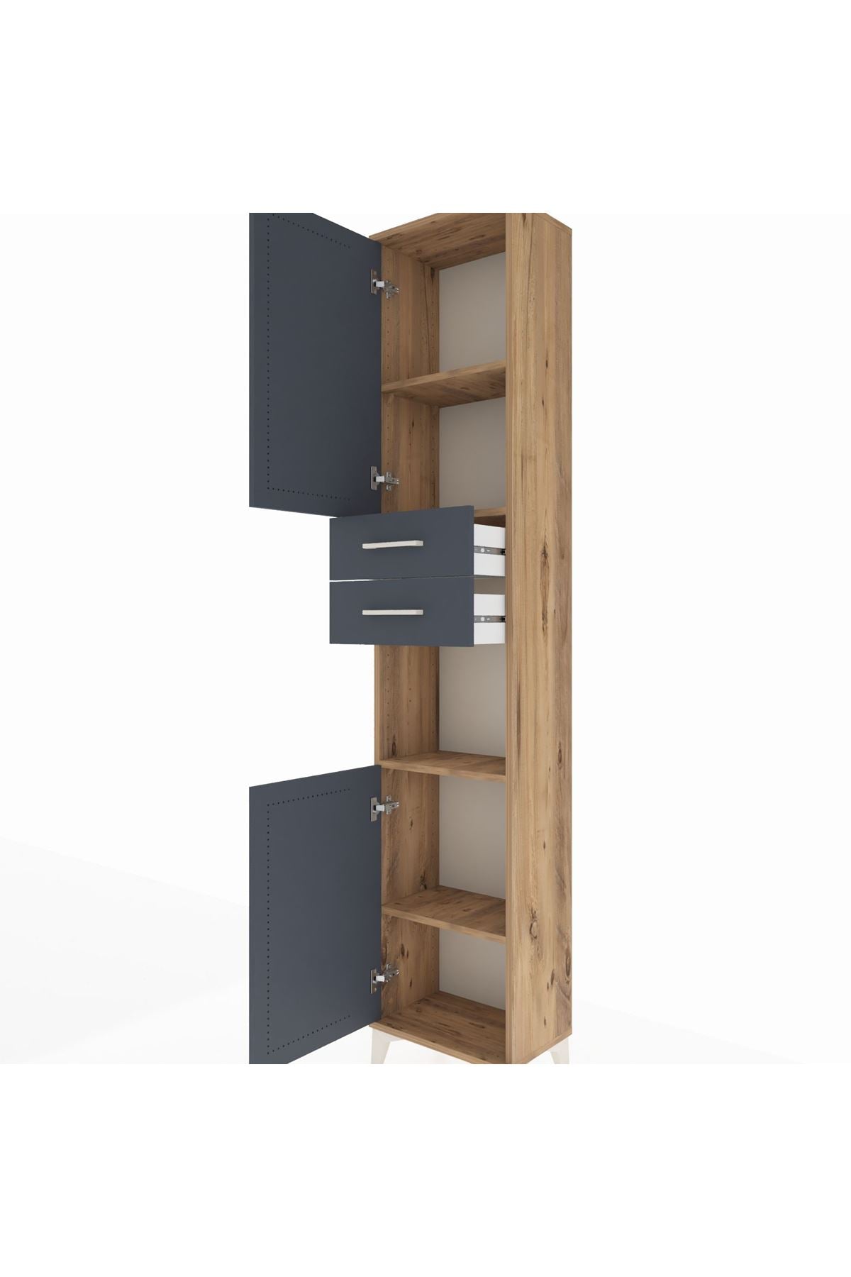 Arges Dolap 4 Raflı 2 Çekmeceli 2 Kapaklı 44x30x221 Çam-Antrasit