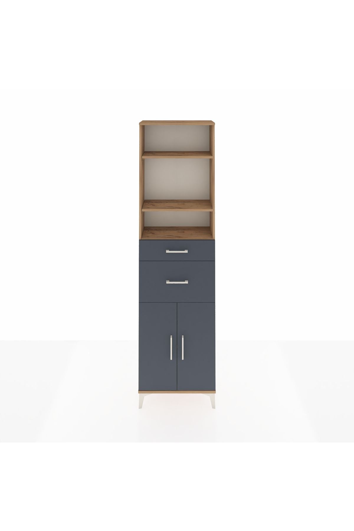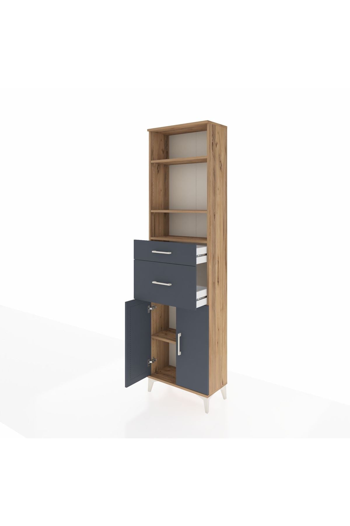 Arges Dolap 4 Raflı 2 Çekmeceli 2 Kapaklı 60x30x221 Çam-Antrasit