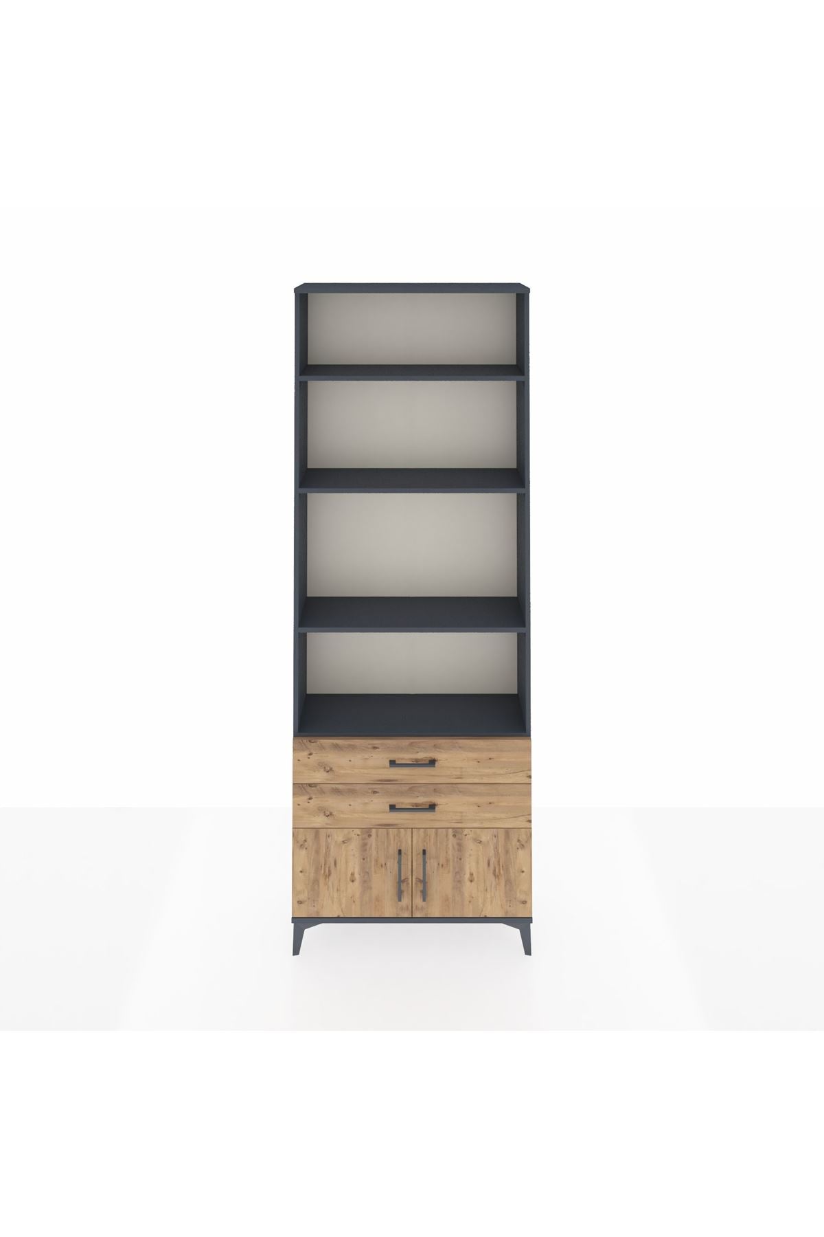 Arges Dolap 4 Raflı 2 Çekmeceli 2 Kapaklı 88x30x243 Antrasit-Çam