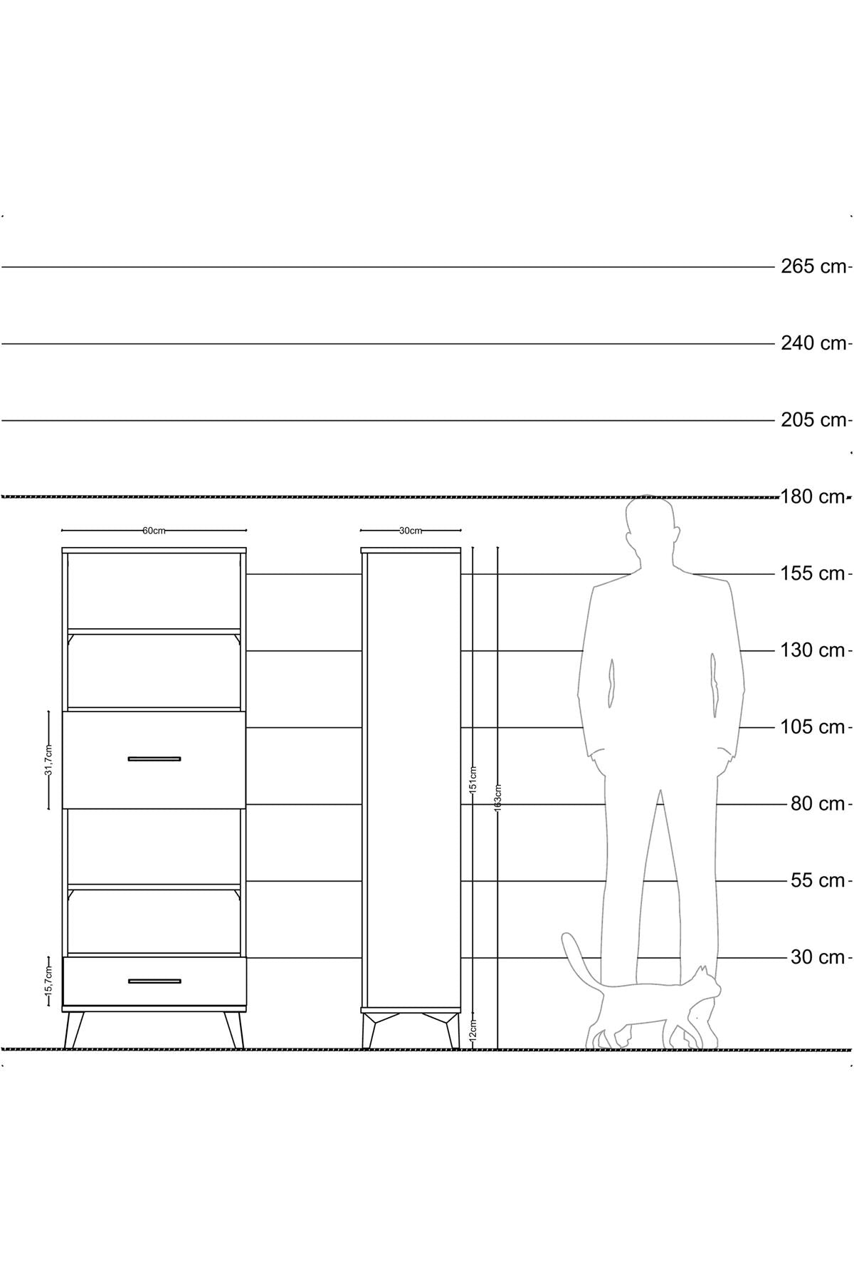 Genişlik: 60 cm  |  Derinlik: 30 cm  |  Yükseklik: 163 cm
