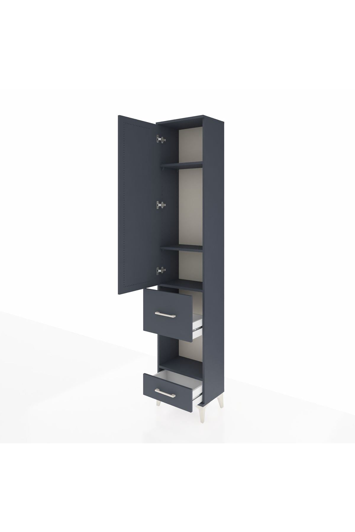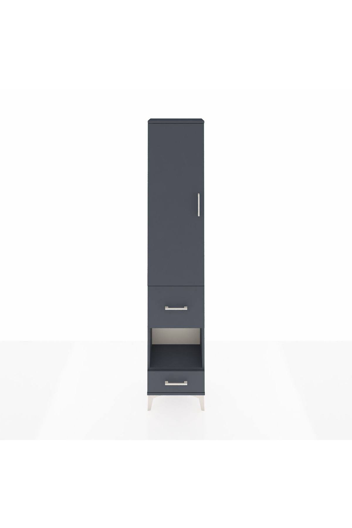 🖤 Arges Dolap 4 Raflı 2 Çekmeceli Tek Kapaklı 44x30x221 Antrasit-Antrasit, minimalist çizgileri ve modern antrasit rengiyle yaşam alanlarınıza maksimum düzen getiriyor.