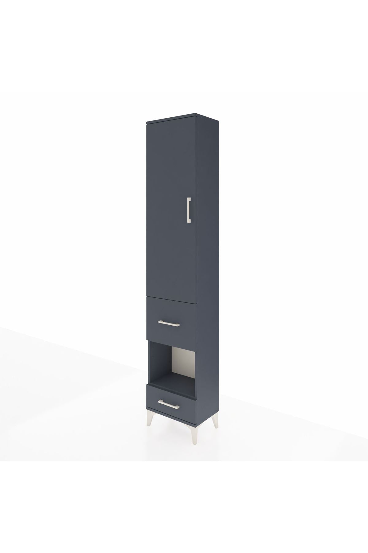 Arges Dolap 4 Raflı 2 Çekmeceli Tek Kapaklı 44x30x221 Antrasit-Antrasit