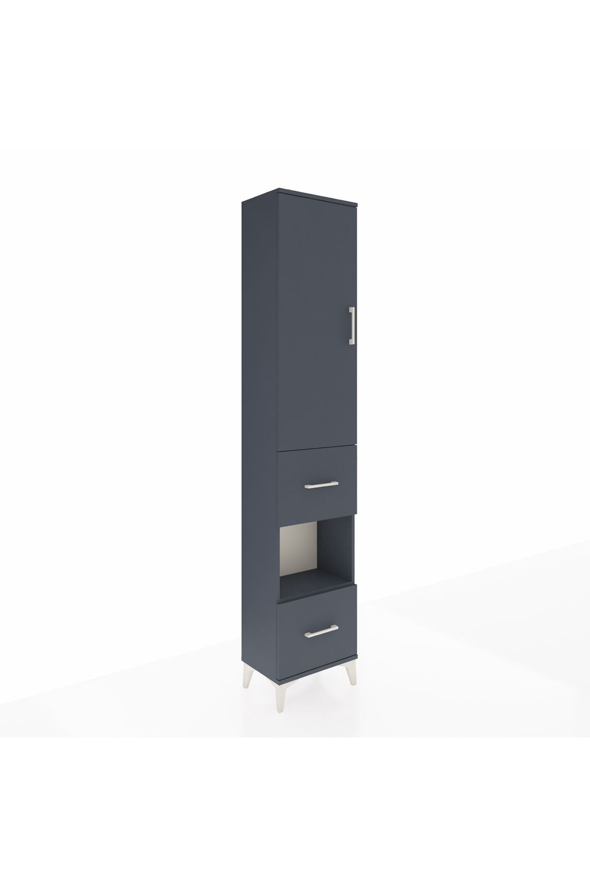 Arges Dolap 4 Raflı 2 Çekmeceli Tek Kapaklı 44x30x221 Antrasit-Antrasit