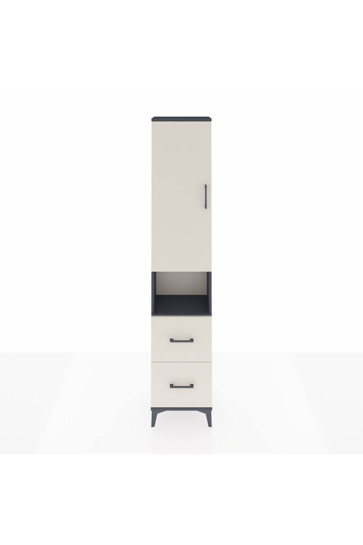 🖤 Arges Dolap 4 Raflı 2 Çekmeceli Tek Kapaklı, 44x30x221 cm boyutları ve zarif Antrasit-Aytaşı renk kombinasyonuyla tarzınızı yaşam alanınıza yansıtıyor.