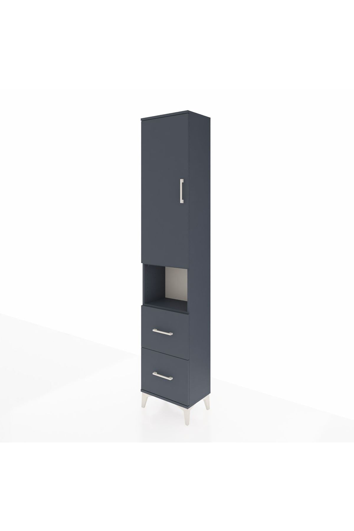 Arges Dolap 4 Raflı 2 Çekmeceli Tek Kapaklı 44x30x221 Antrasit-Antrasit