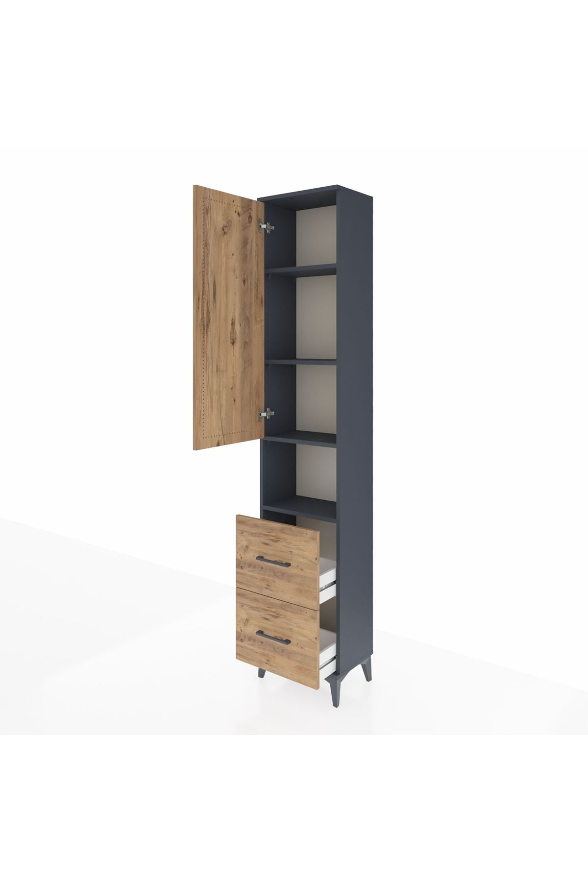 Arges Dolap 4 Raflı 2 Çekmeceli Tek Kapaklı 44x30x221 Antrasit-Çam modeliyle modern yaşam alanlarınıza pratik ve şık bir depolama çözümü sunar; benzersiz renk kombinasyonu dekorunuza güçlü bir karakter kazandırır.