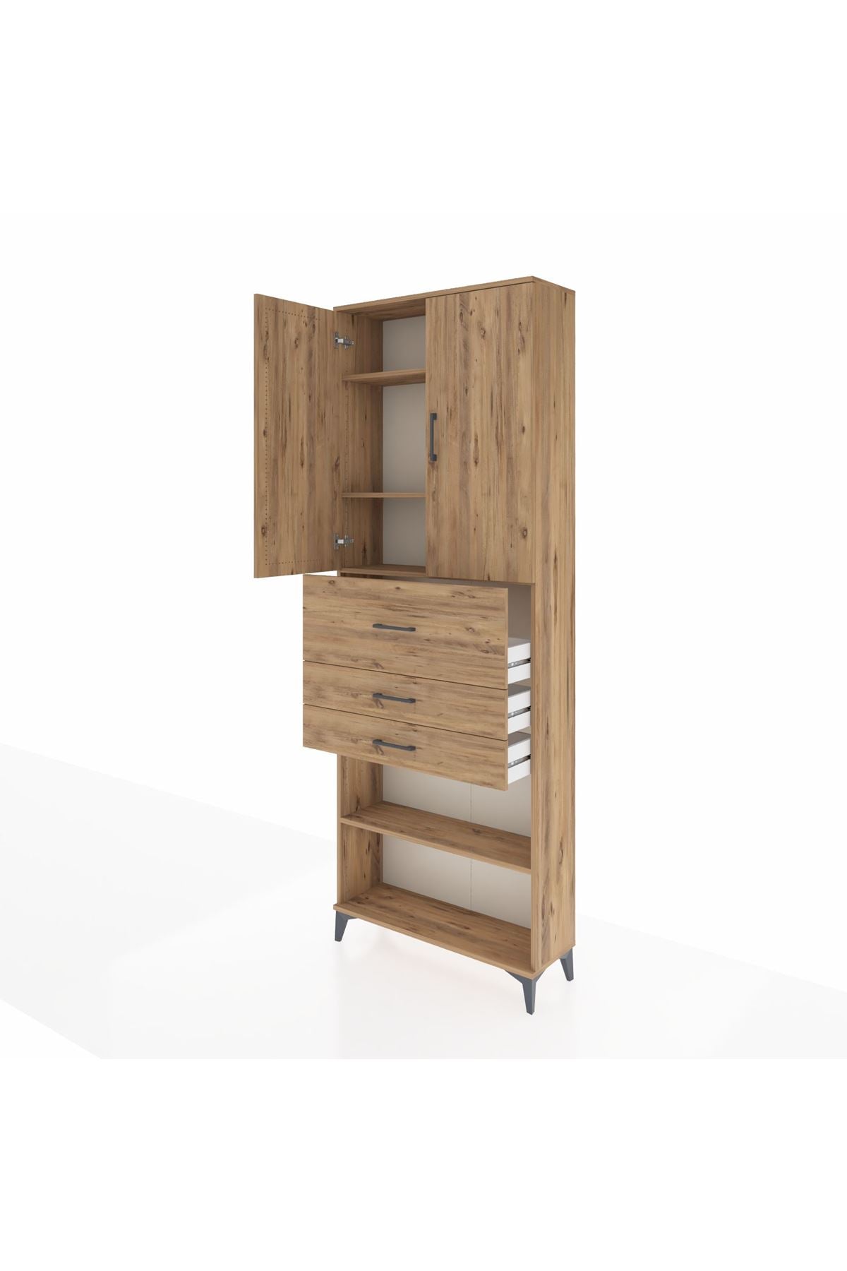 Arges Dolap 4 Raflı 3 Çekmeceli 2 Kapaklı 88x30x243 Çam-Çam