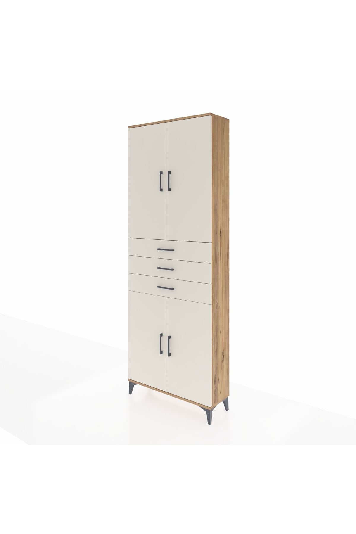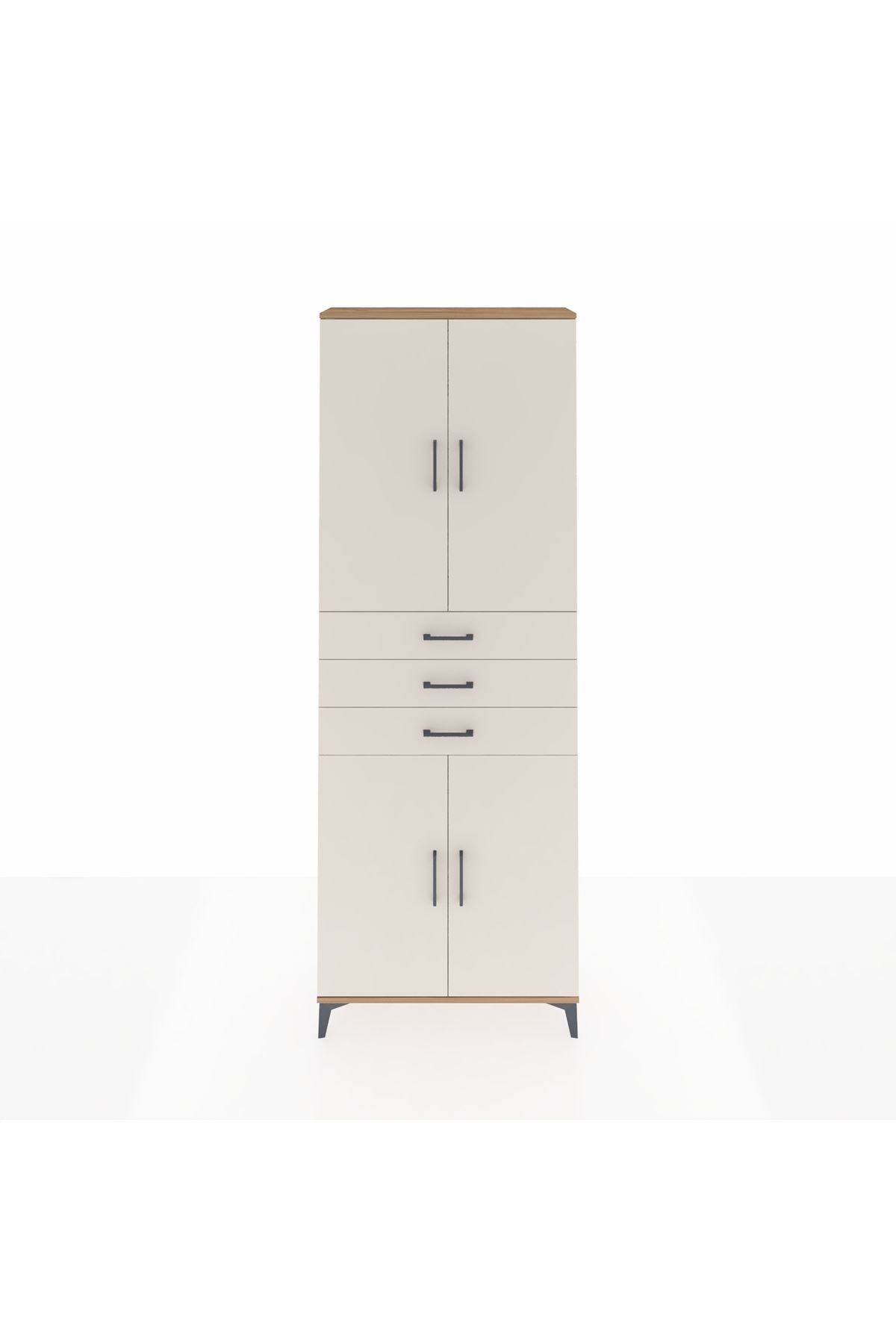 Arges Dolap 4 Raflı 3 Çekmeceli 4 Kapaklı 88x30x243 Çam-Aytaşı