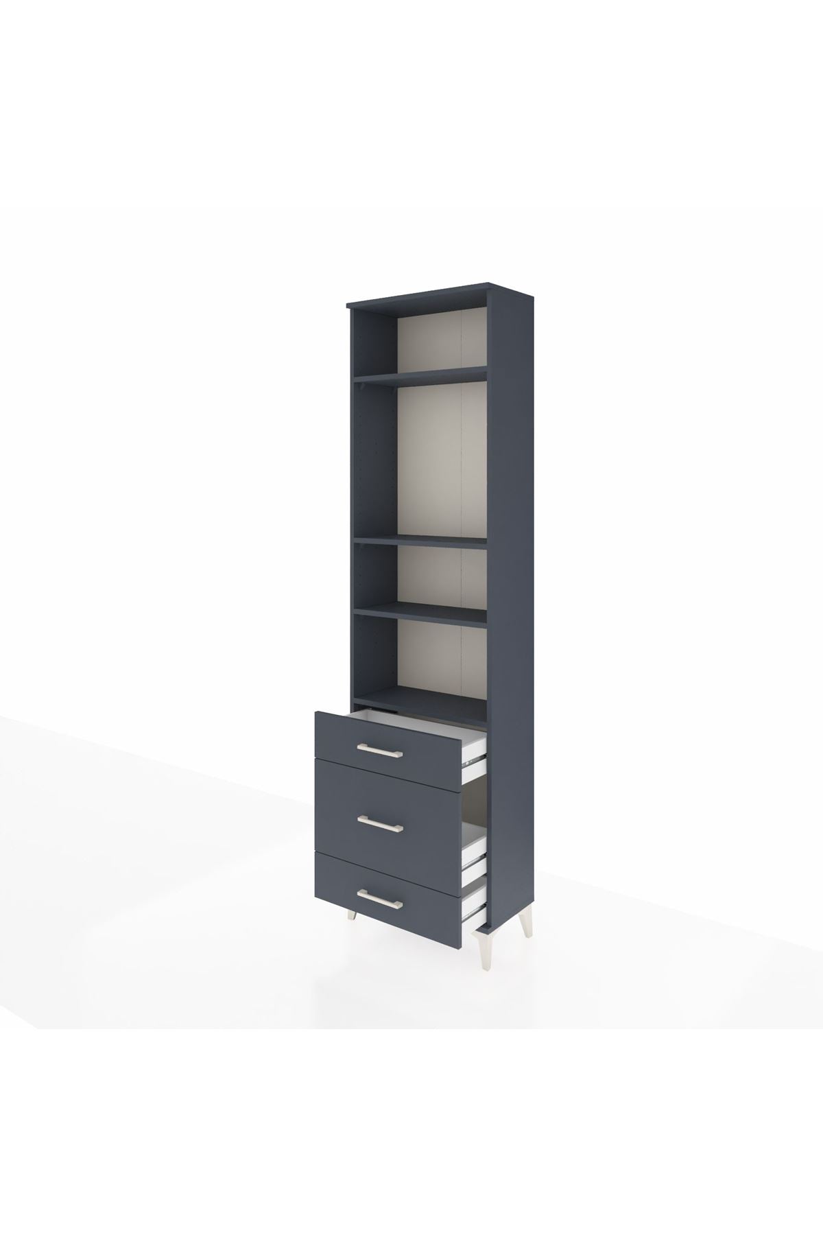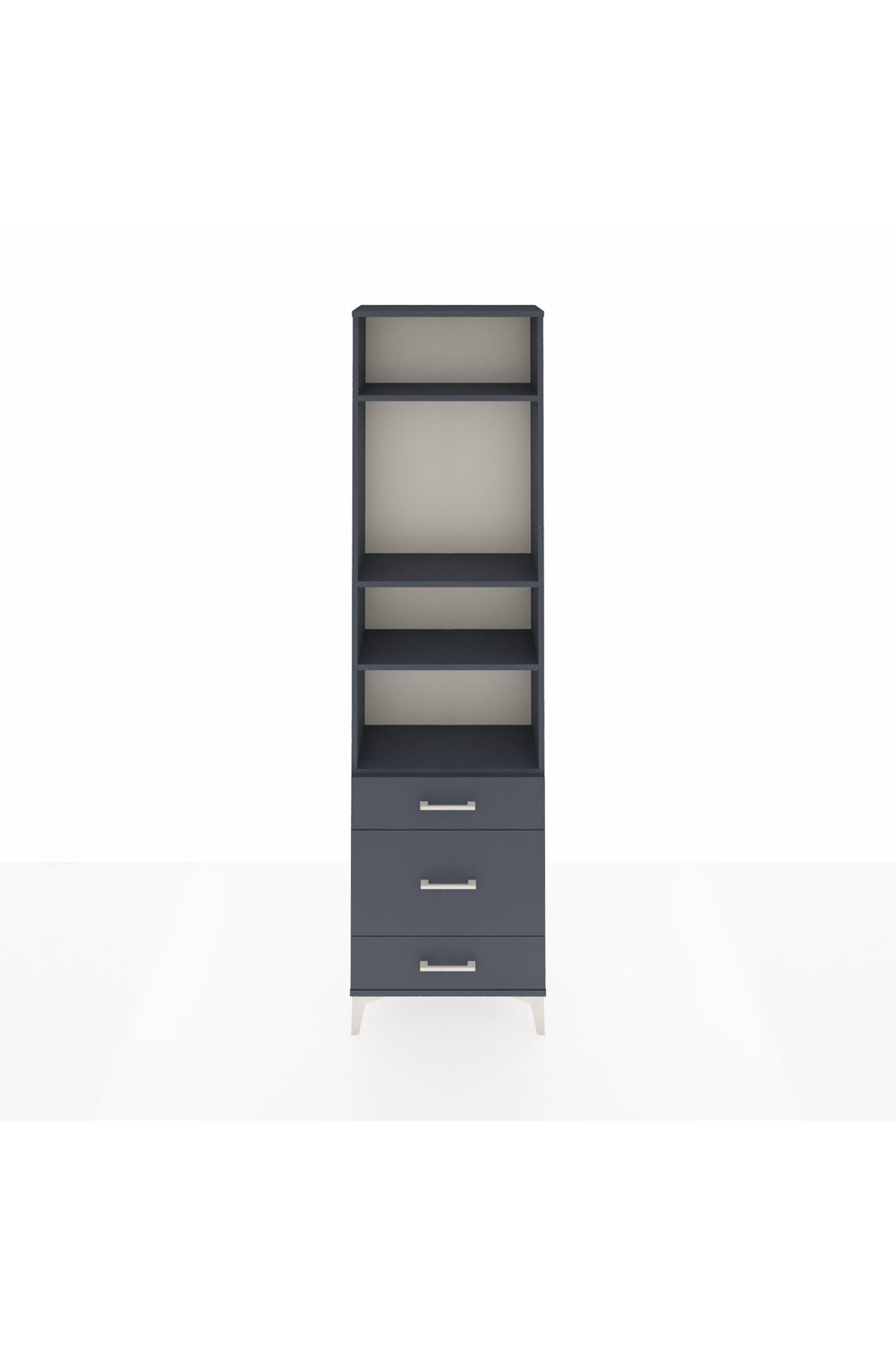 Arges Dolap 4 Raflı 3 Çekmeceli 60x30x221 Antrasit-Antrasit
