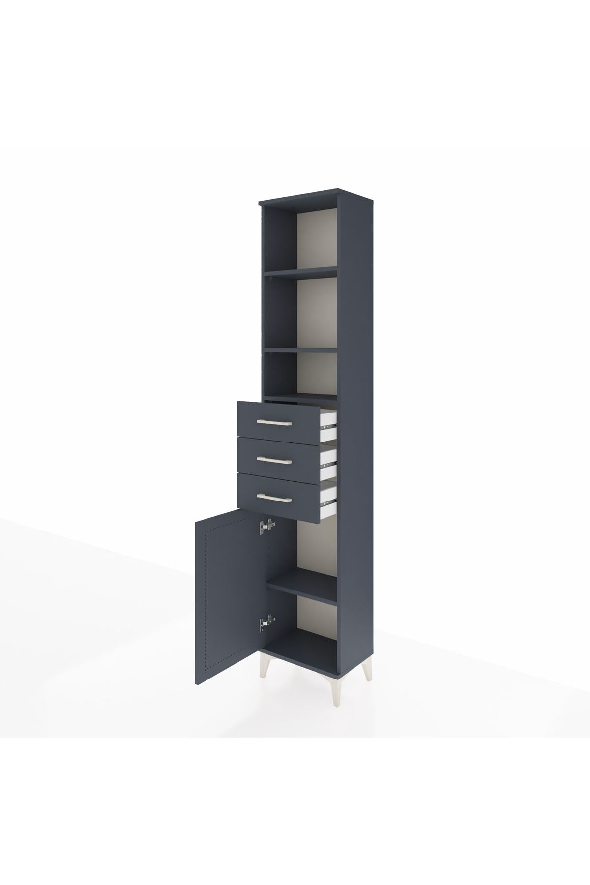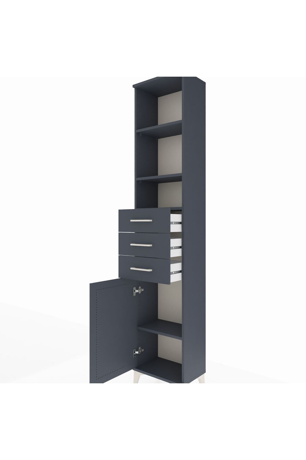 Arges Dolap 4 Raflı 3 Çekmeceli Tek Kapaklı 44x30x221 Antrasit-Antrasit