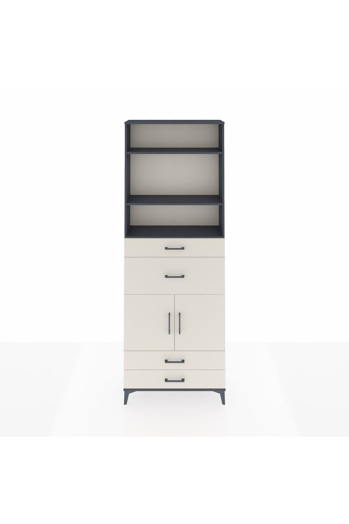 Arges Dolap 4 Raflı 4 Çekmeceli 2 Kapaklı 88x30x243 Antrasit-Aytaşı