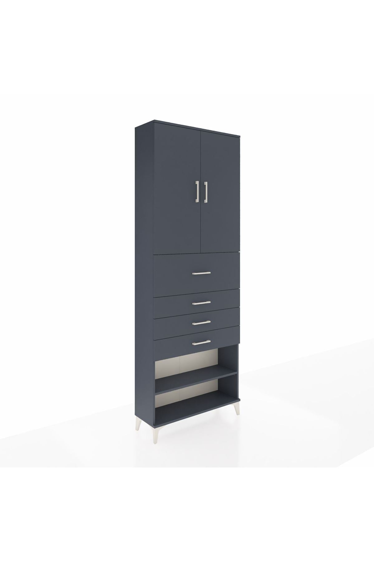 Arges Dolap 4 Raflı 4 Çekmeceli 2 Kapaklı 88x30x243 Antrasit-Antrasit