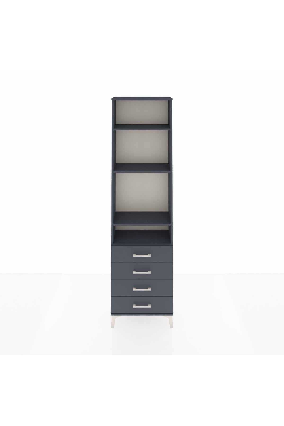 Arges Dolap 4 Raflı 4 Çekmeceli 60x30x221 Antrasit-Antrasit