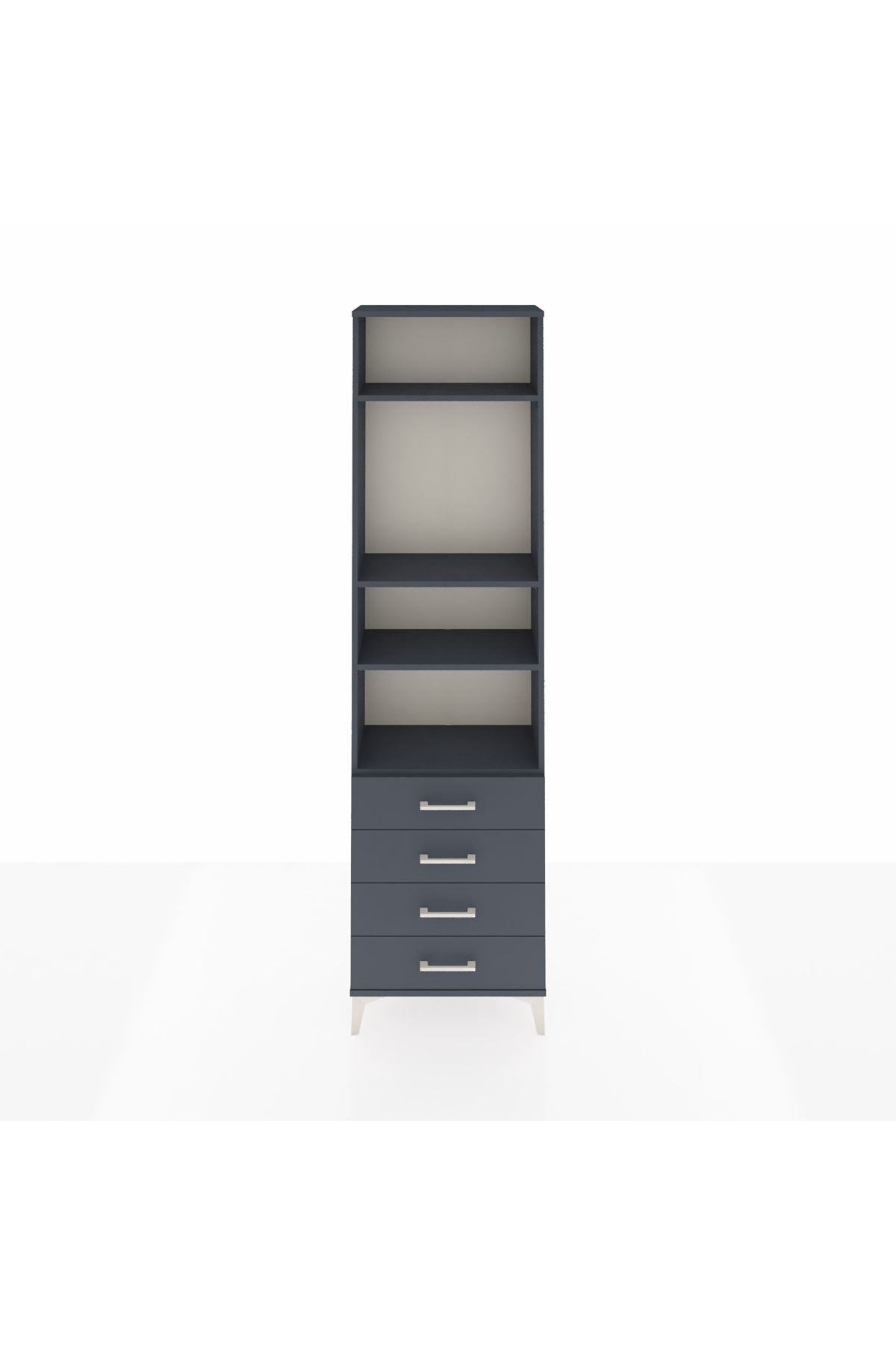 Arges Dolap 4 Raflı 4 Çekmeceli 60x30x221 Antrasit-Antrasit