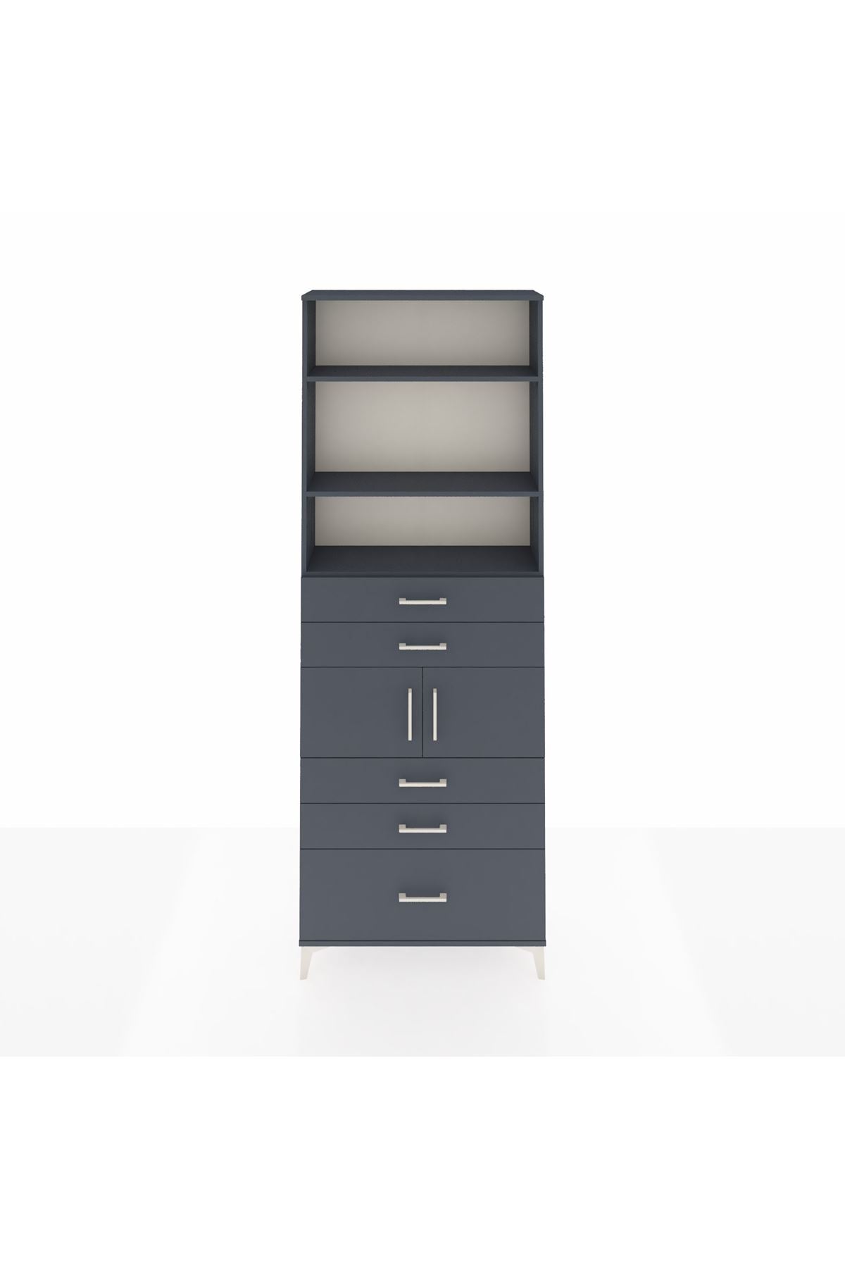 Arges Dolap 4 Raflı 5 Çekmeceli 2 Kapaklı 88x30x243 Antrasit-Antrasit