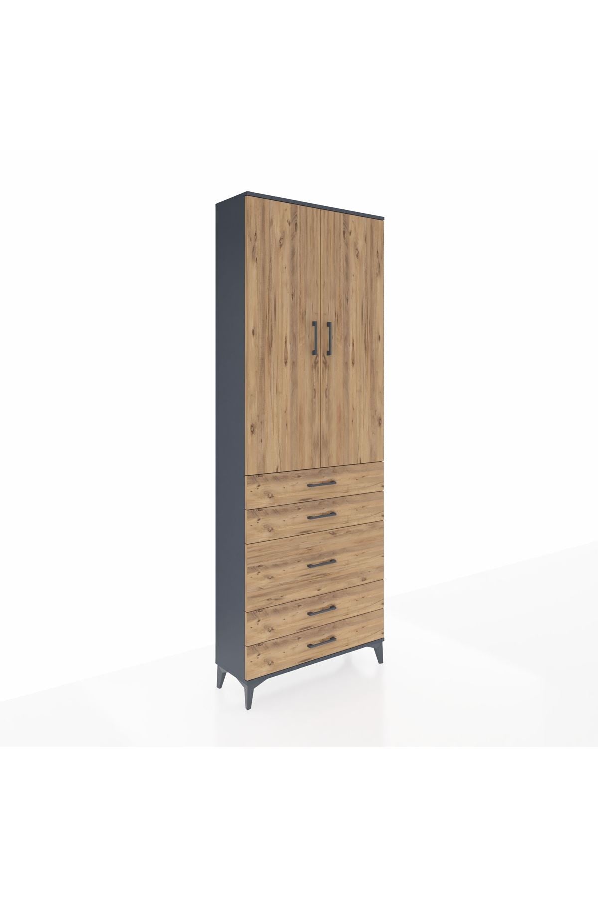 Arges Dolap 4 Raflı 5 Çekmeceli 2 Kapaklı 88x30x243 Antrasit-Çam