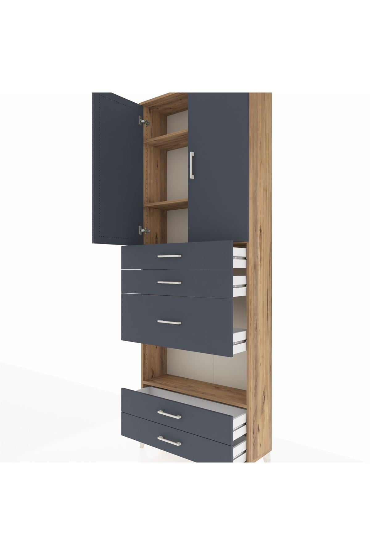 Arges Dolap 4 Raflı 5 Çekmeceli 2 Kapaklı 88x30x243 Çam-Antrasit
