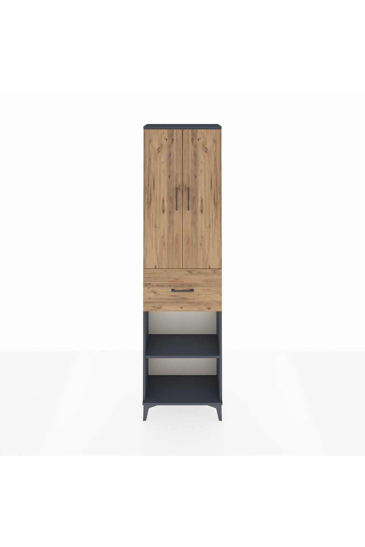 🖤 Arges Dolap 4 Raflı Tek Çekmeceli 2 Kapaklı modelimiz, antrasit ve çam renk kombinasyonuyla yaşam alanlarınızda şıklığı garantiliyor. Yüksek tasarımı sayesinde hem estetik hem de çok yönlü bir saklama çözümü sunuyor.