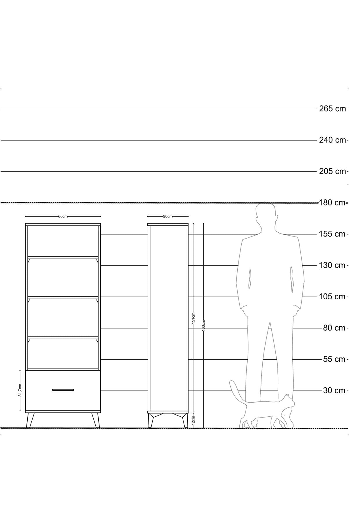 Genişlik: 60 cm / Derinlik: 30 cm / Yükseklik: 163 cm