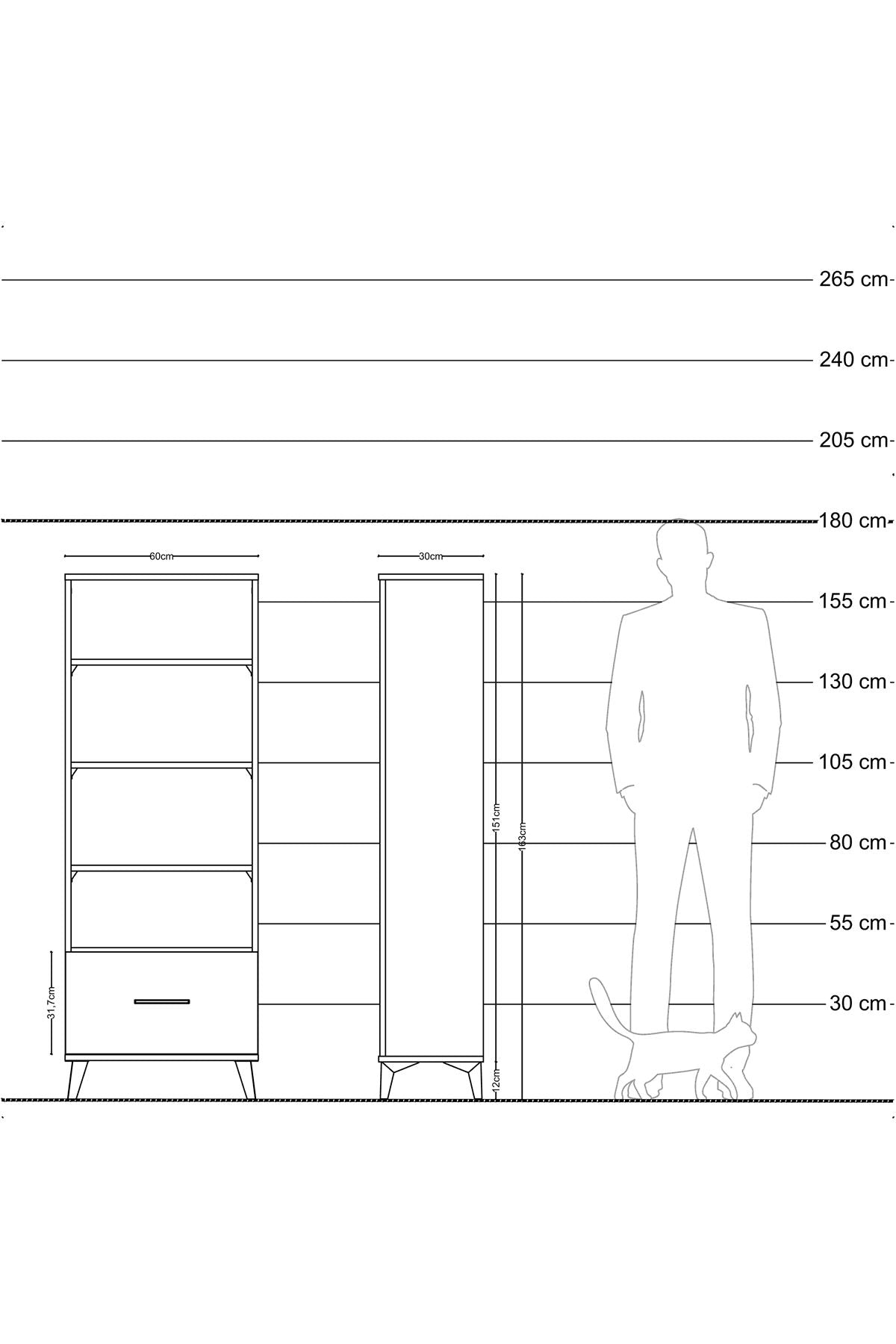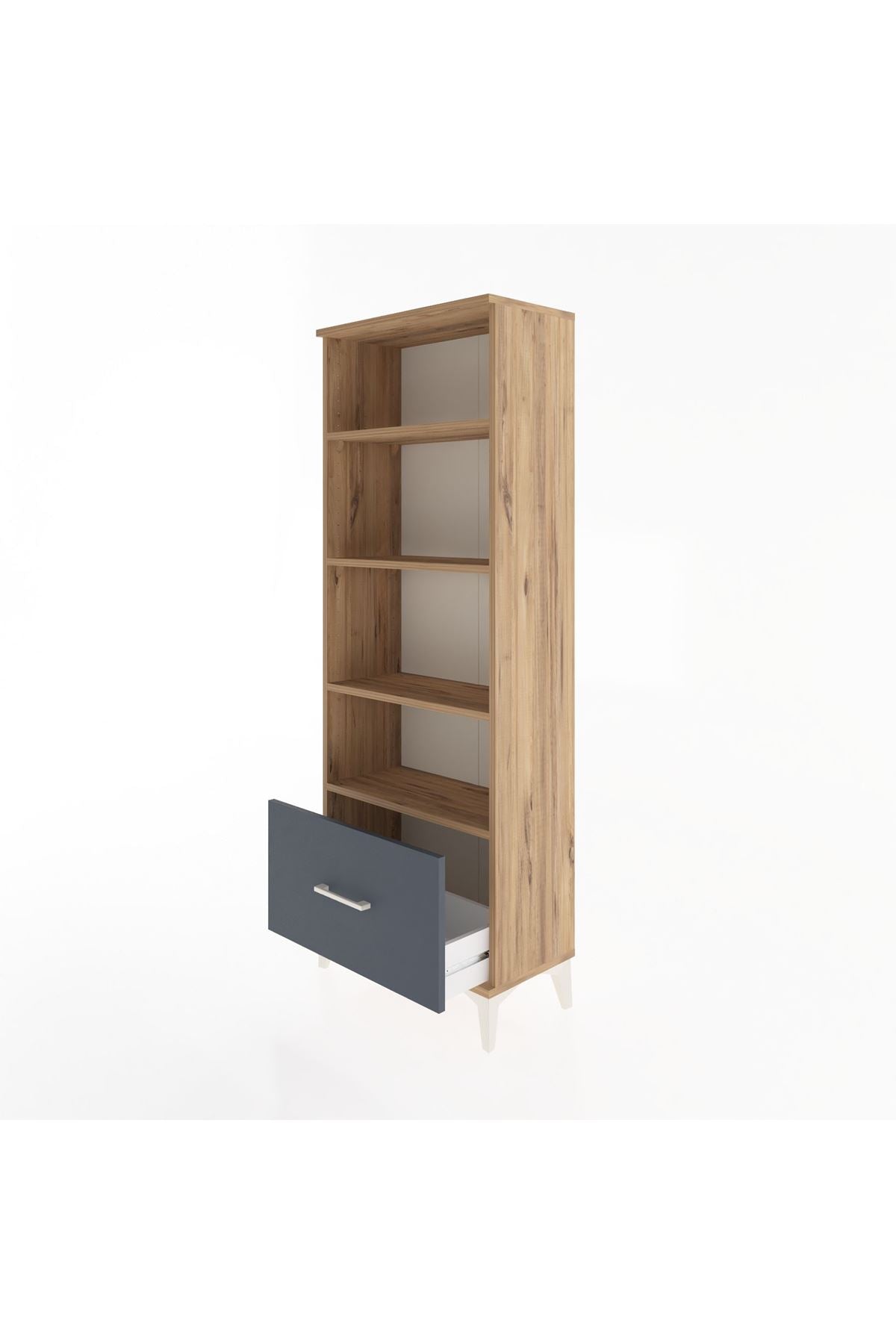 Arges Dolap 4 Raflı Tek Çekmeceli 60x30x163 Çam-Antrasit