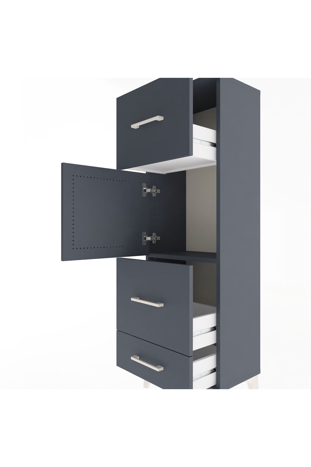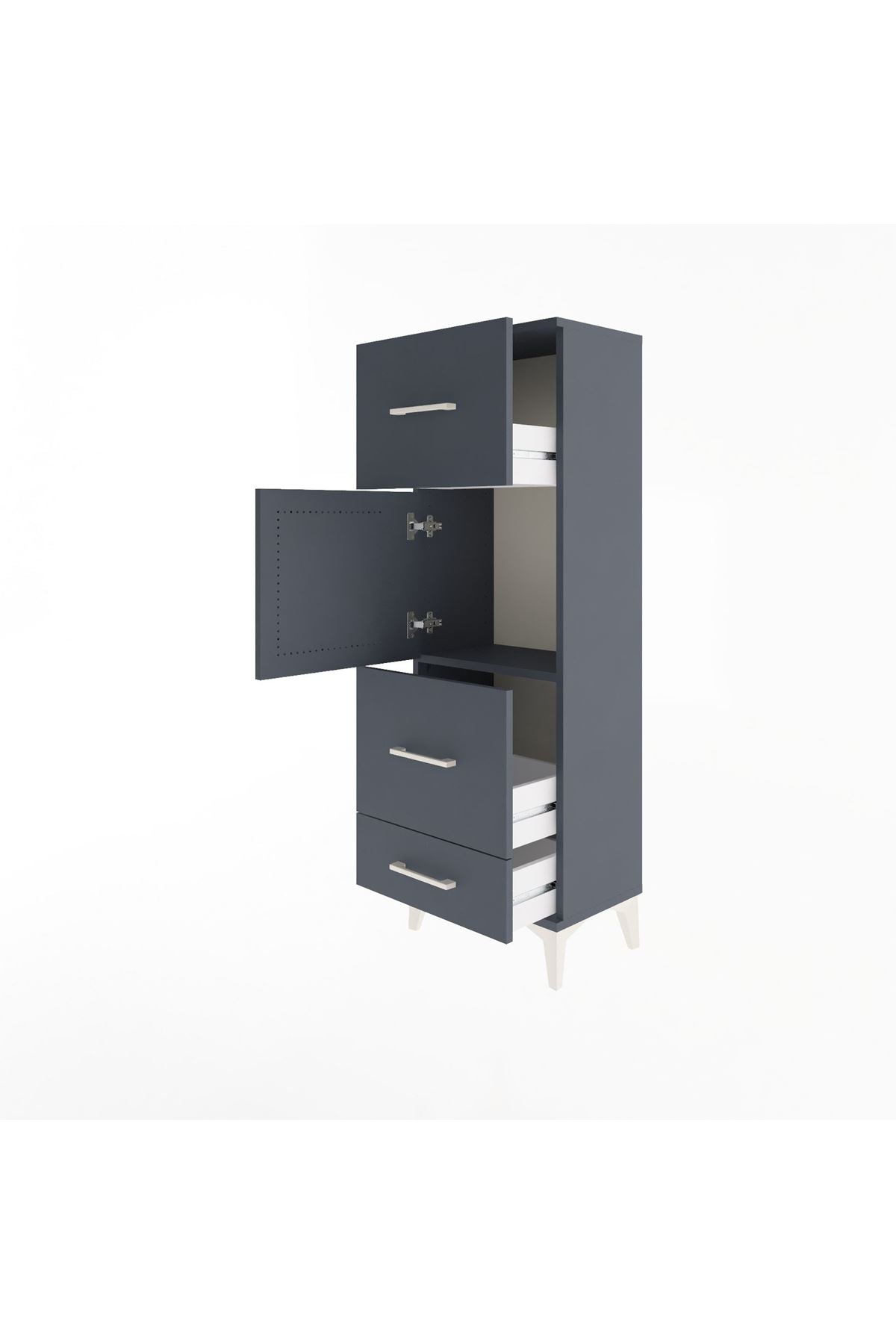 Arges Dolap Tek Raflı 3 Çekmeceli Tek Kapaklı 44x30x134 Antrasit-Antrasit