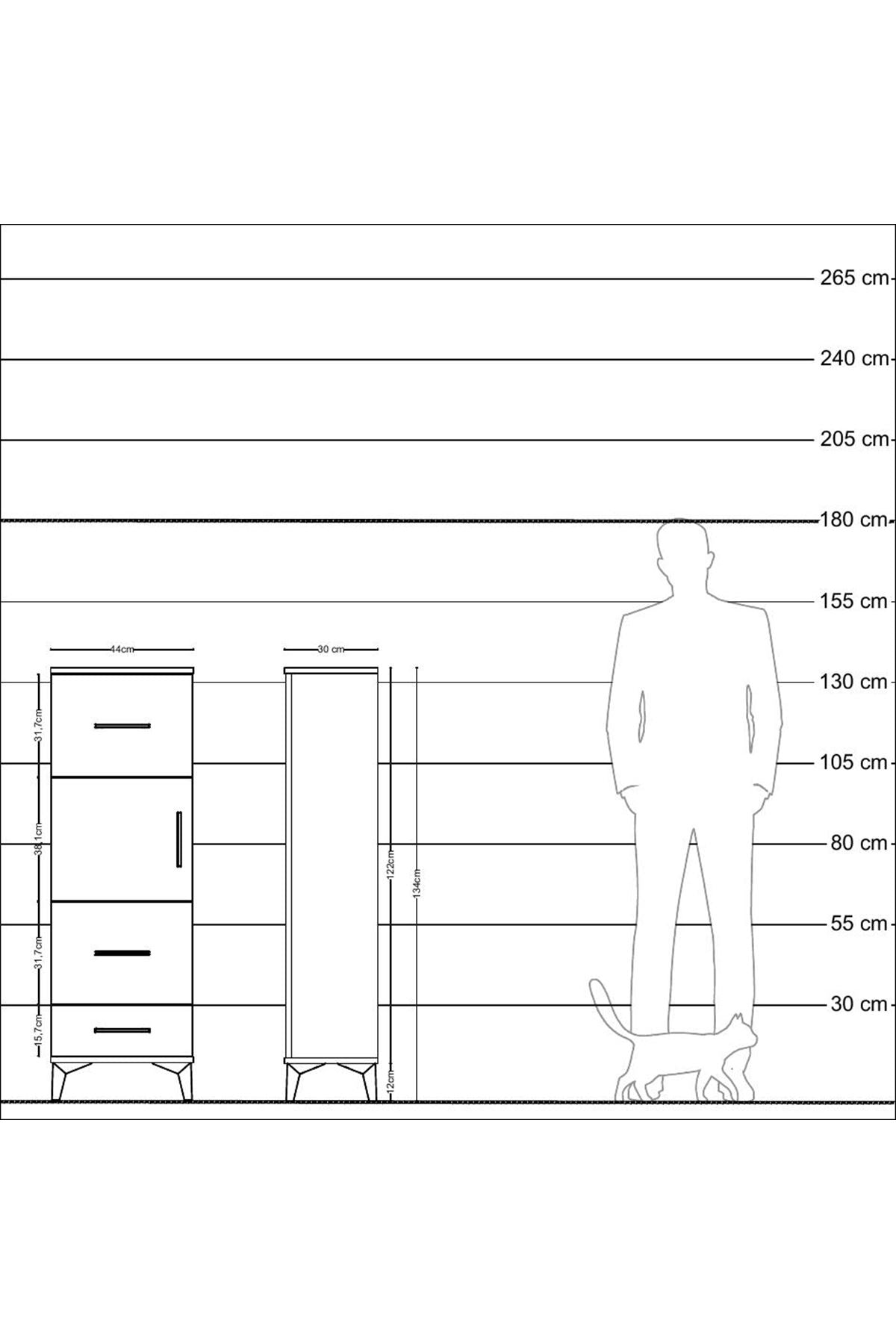 Arges Dolap Tek Raflı 3 Çekmeceli Tek Kapaklı 44x30x134 Çam-Çam