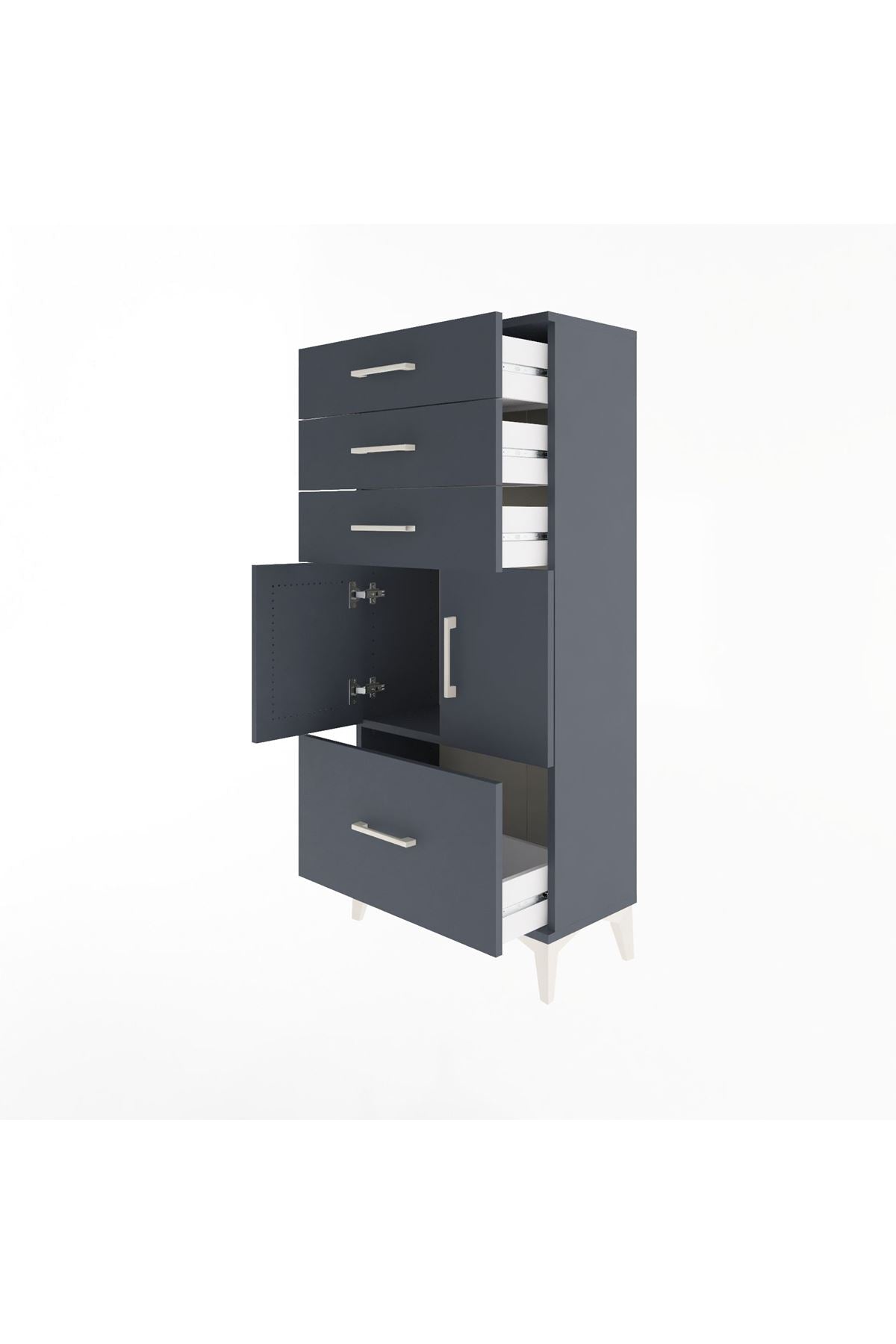 Arges Dolap Tek Raflı 4 Çekmeceli 2 Kapaklı 60x30x134 Antrasit-Antrasit