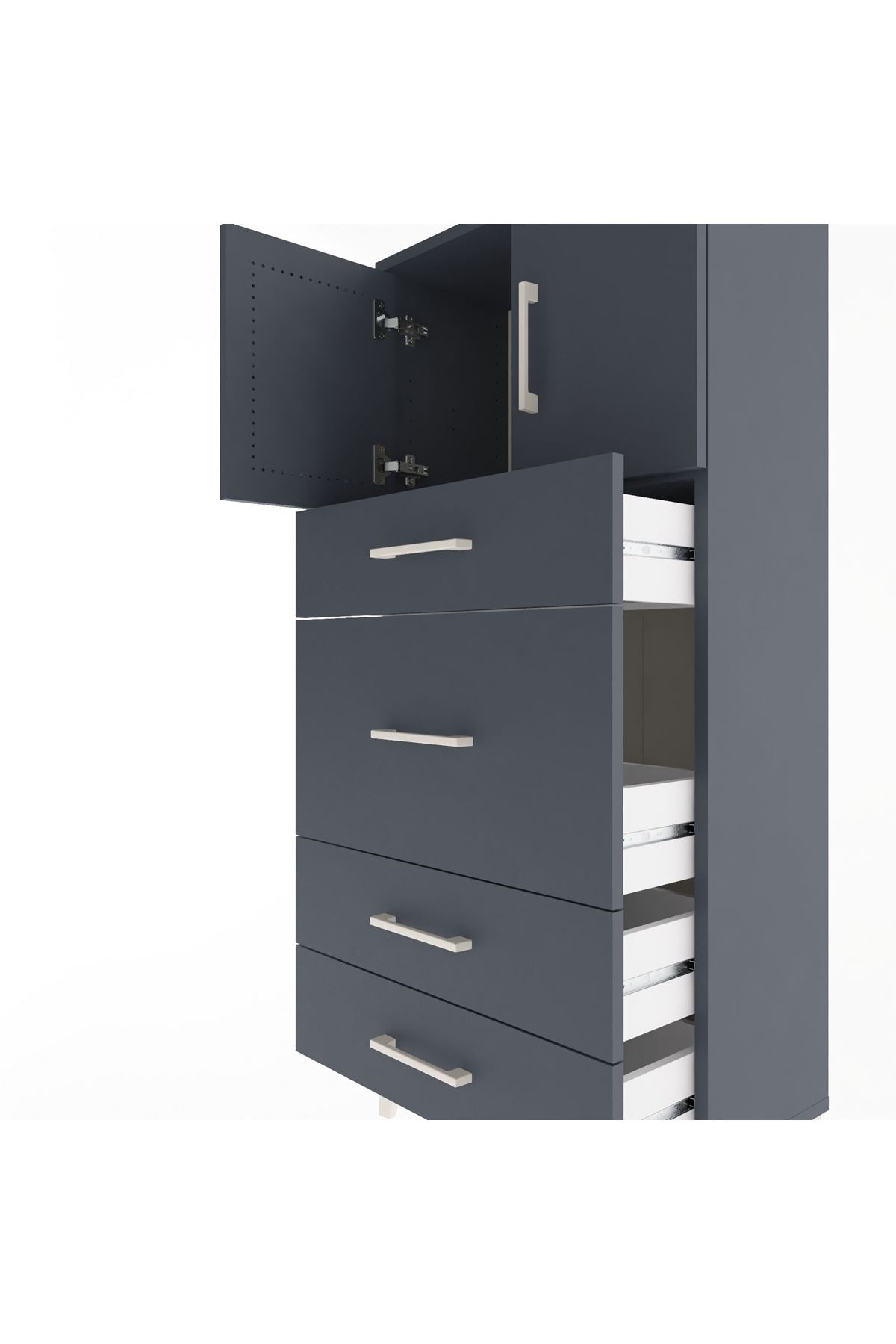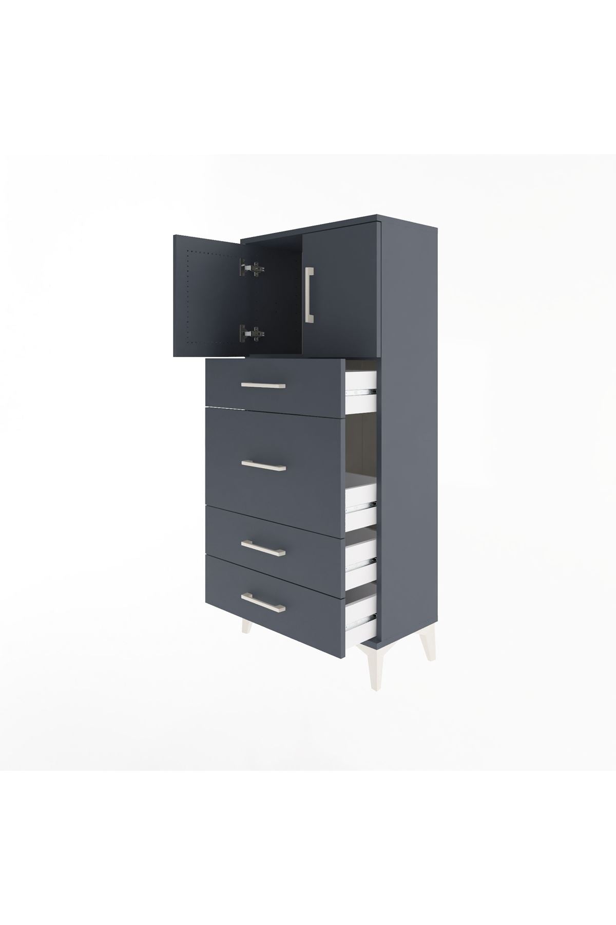 Arges Dolap Tek Raflı 4 Çekmeceli 2 Kapaklı 60x30x134 Antrasit-Antrasit