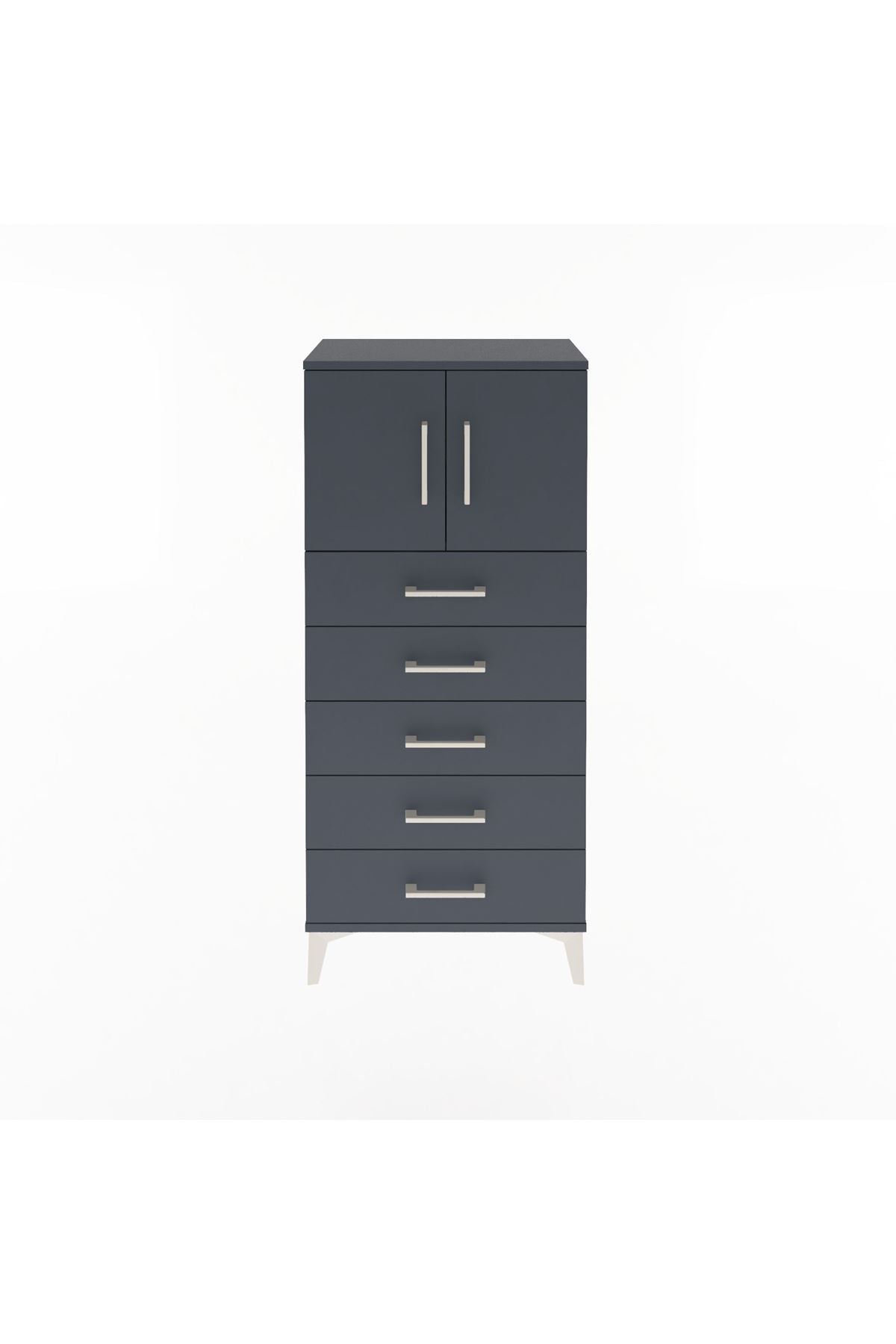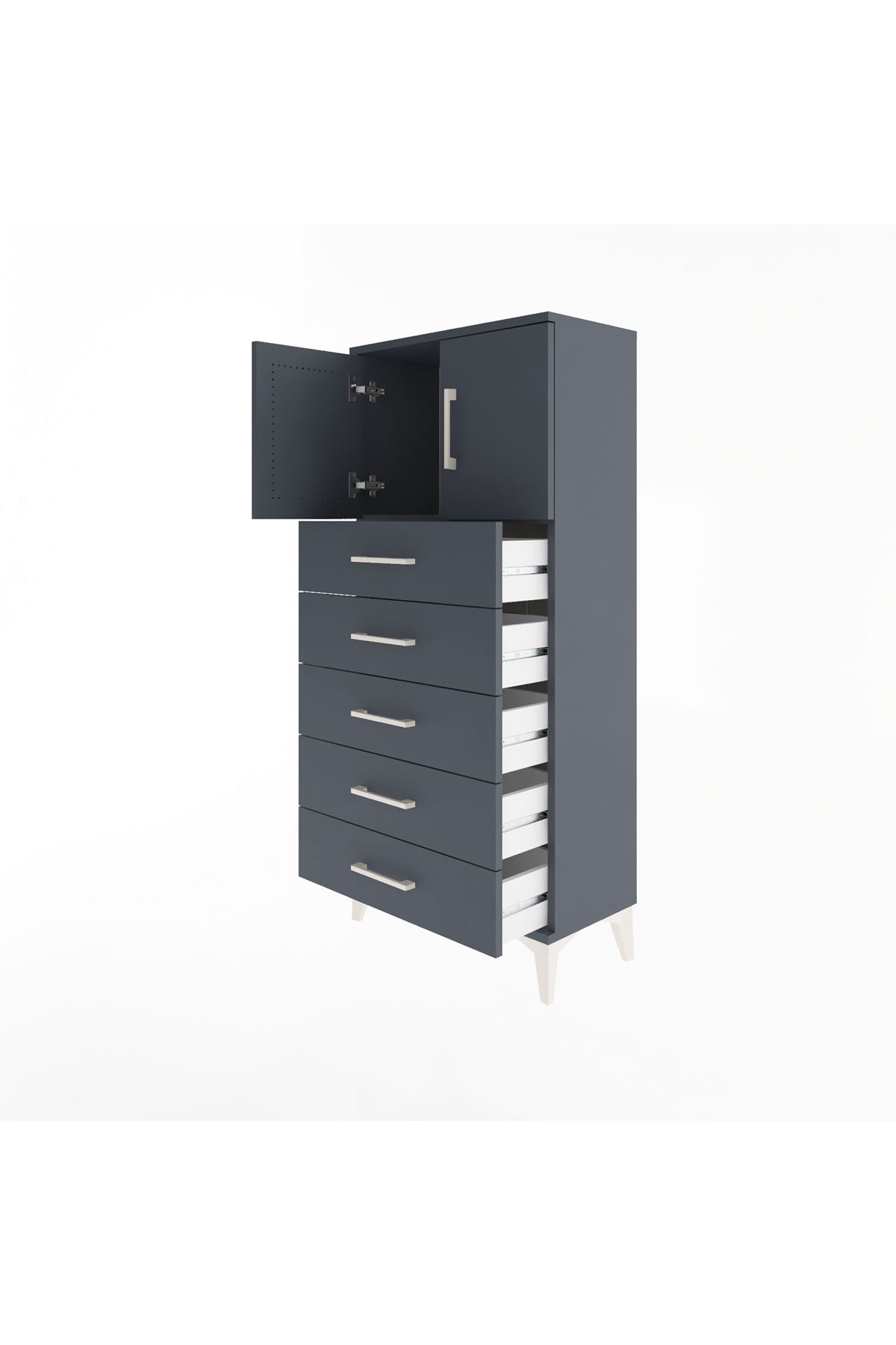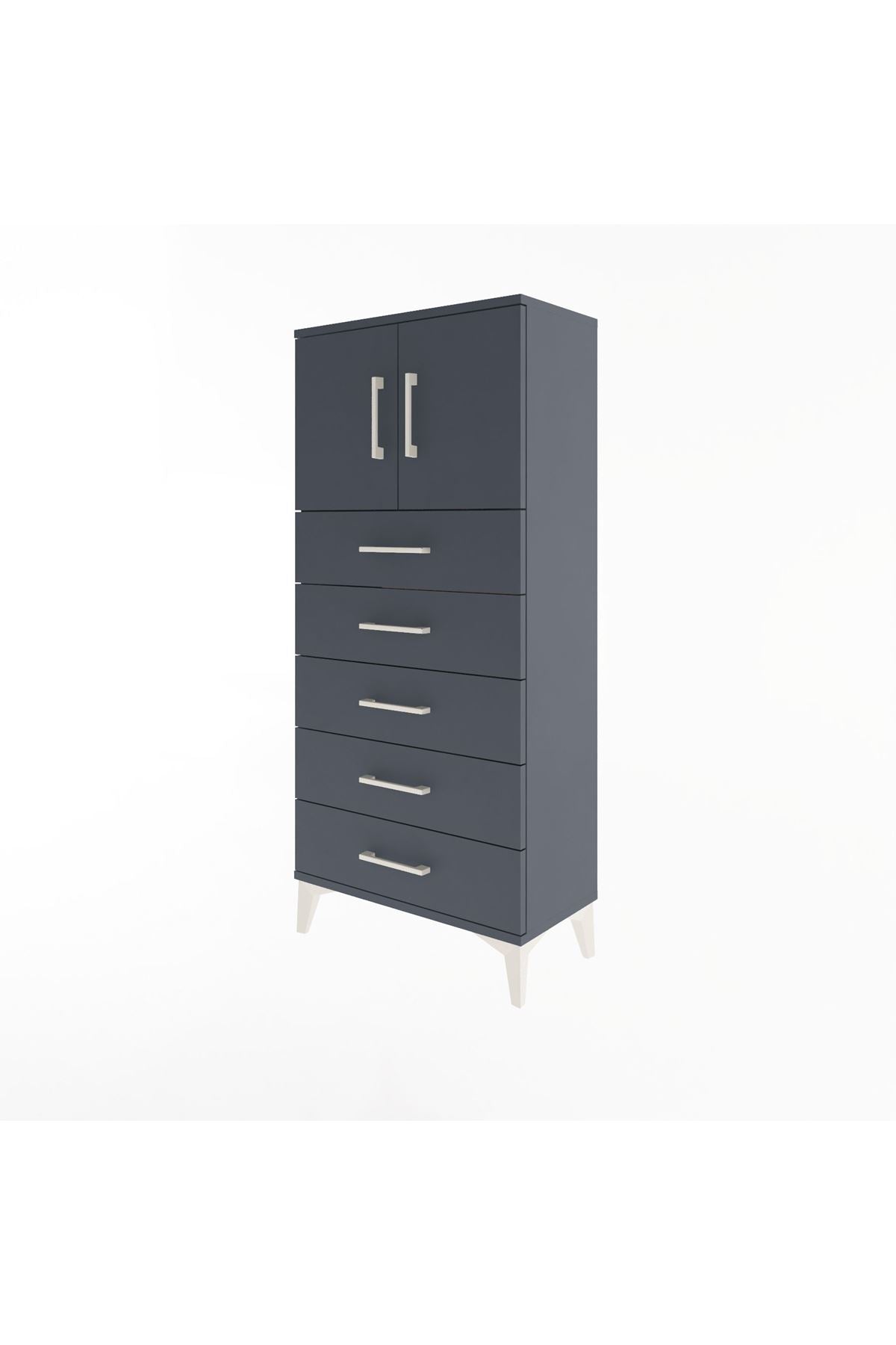 Arges Dolap Tek Raflı 4 Çekmeceli 2 Kapaklı 60x30x134 Antrasit-Antrasit