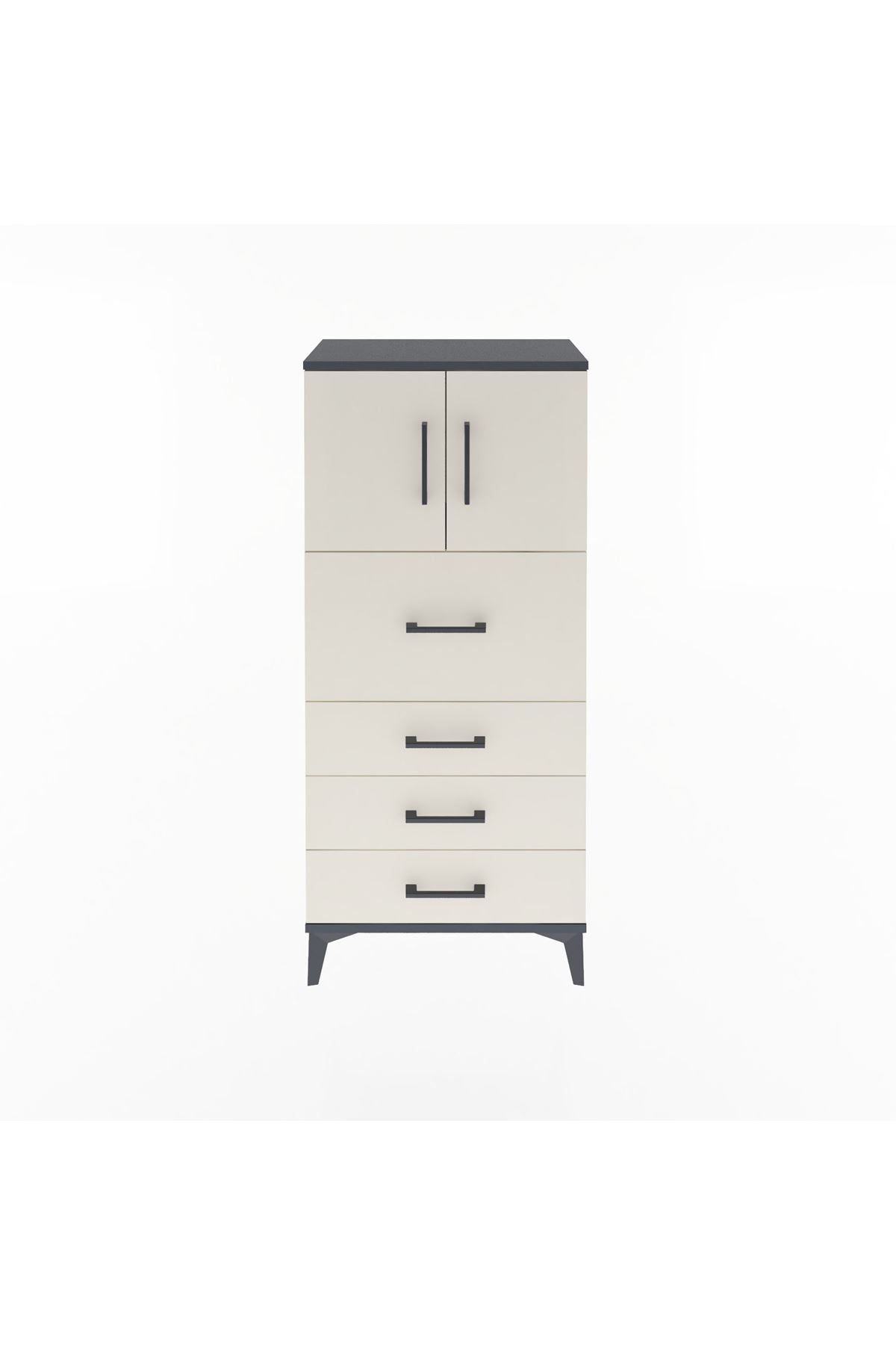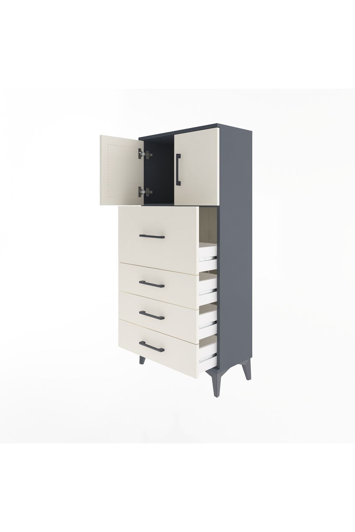 Arges Dolap Tek Raflı 4 Çekmeceli 2 Kapaklı 60x30x134 Antrasit-Aytaşı