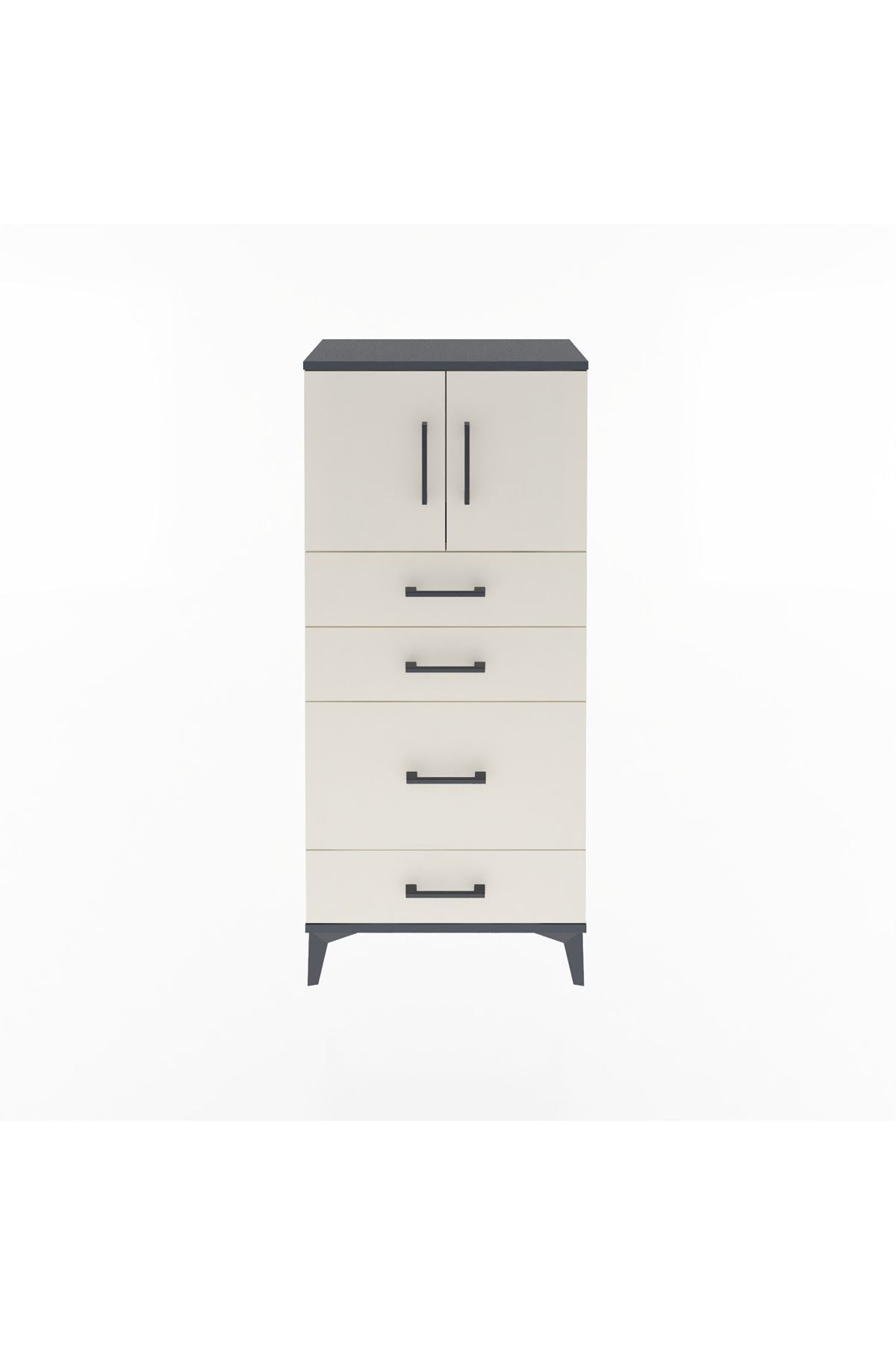 Arges Dolap Tek Raflı 4 Çekmeceli 2 Kapaklı 60x30x134 Antrasit-Aytaşı