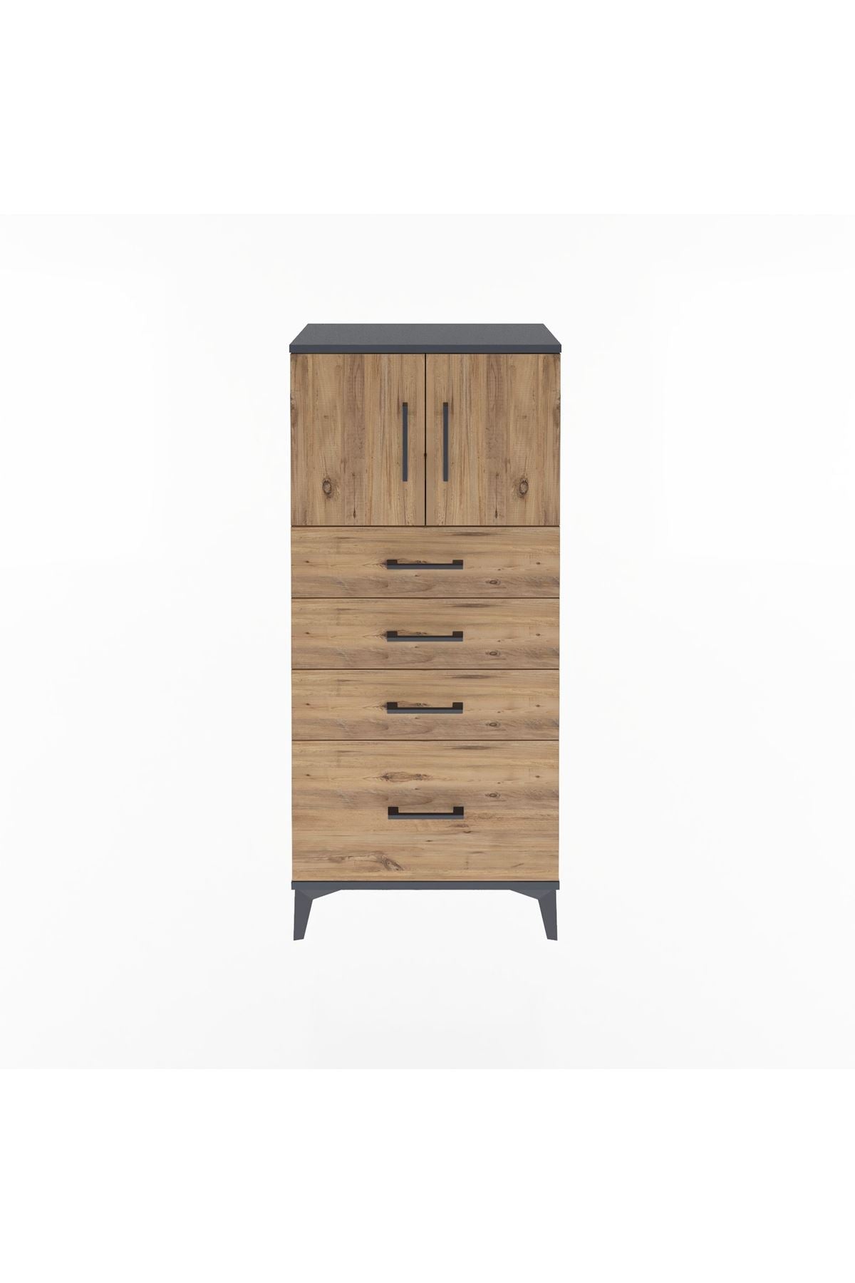 Arges Dolap Tek Raflı 4 Çekmeceli 2 Kapaklı 60x30x134 Antrasit-Çam