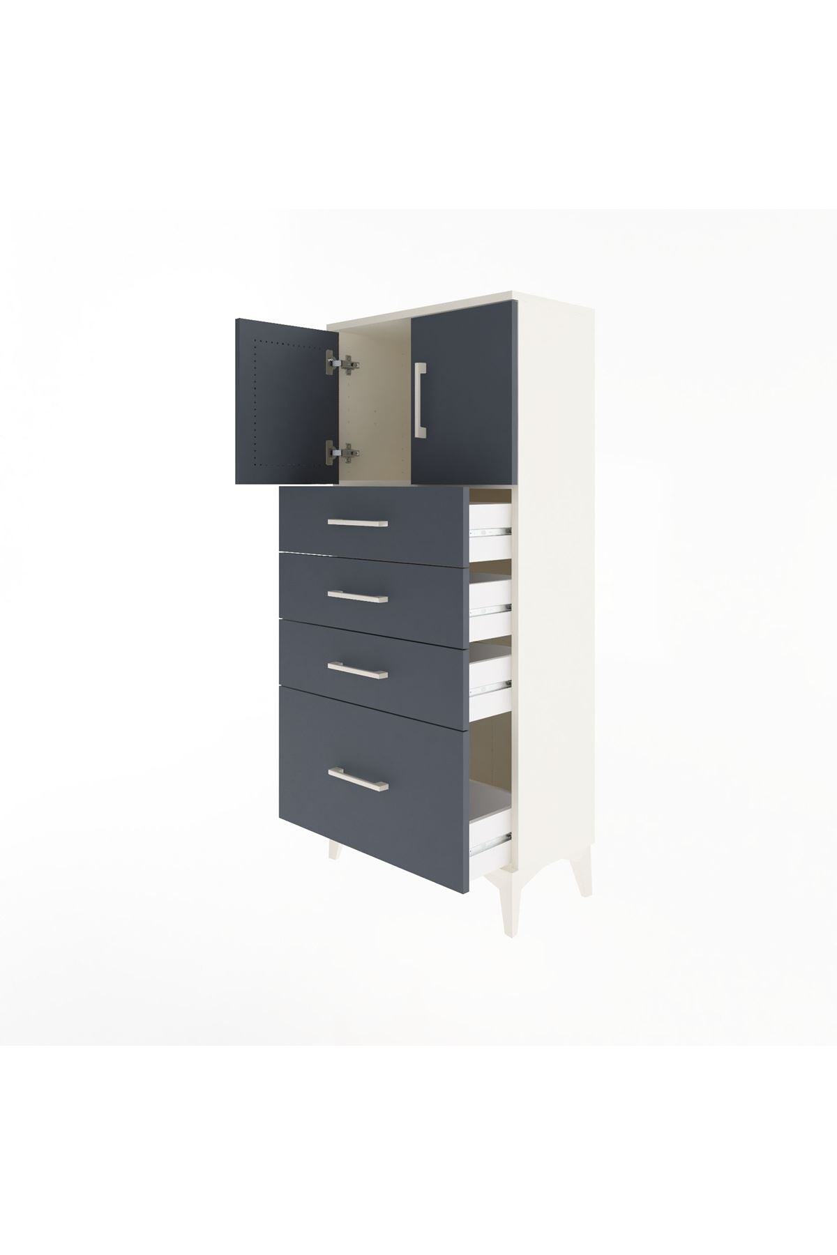 Arges Dolap Tek Raflı 4 Çekmeceli 2 Kapaklı 60x30x134 Aytaşı-Antrasit